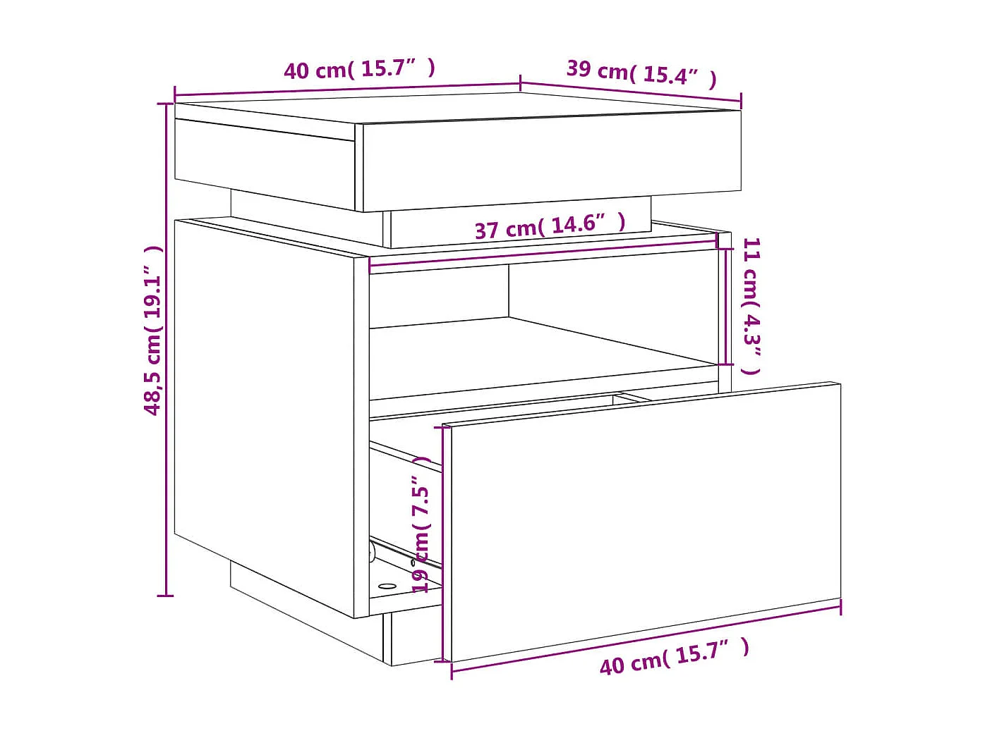 Table de chevet avec lumières LED chêne sonoma 40x39x37 cm