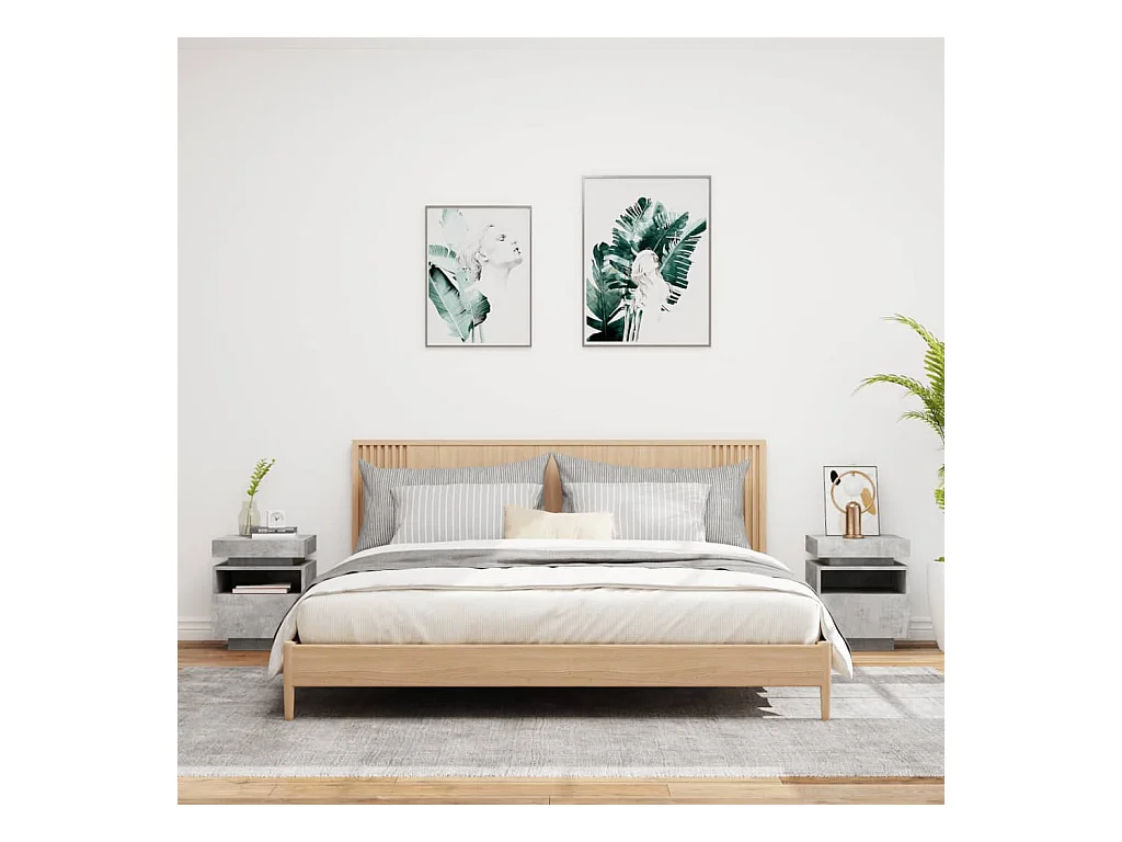 Tables de chevet avec lumières LED 2 pièces gris béton