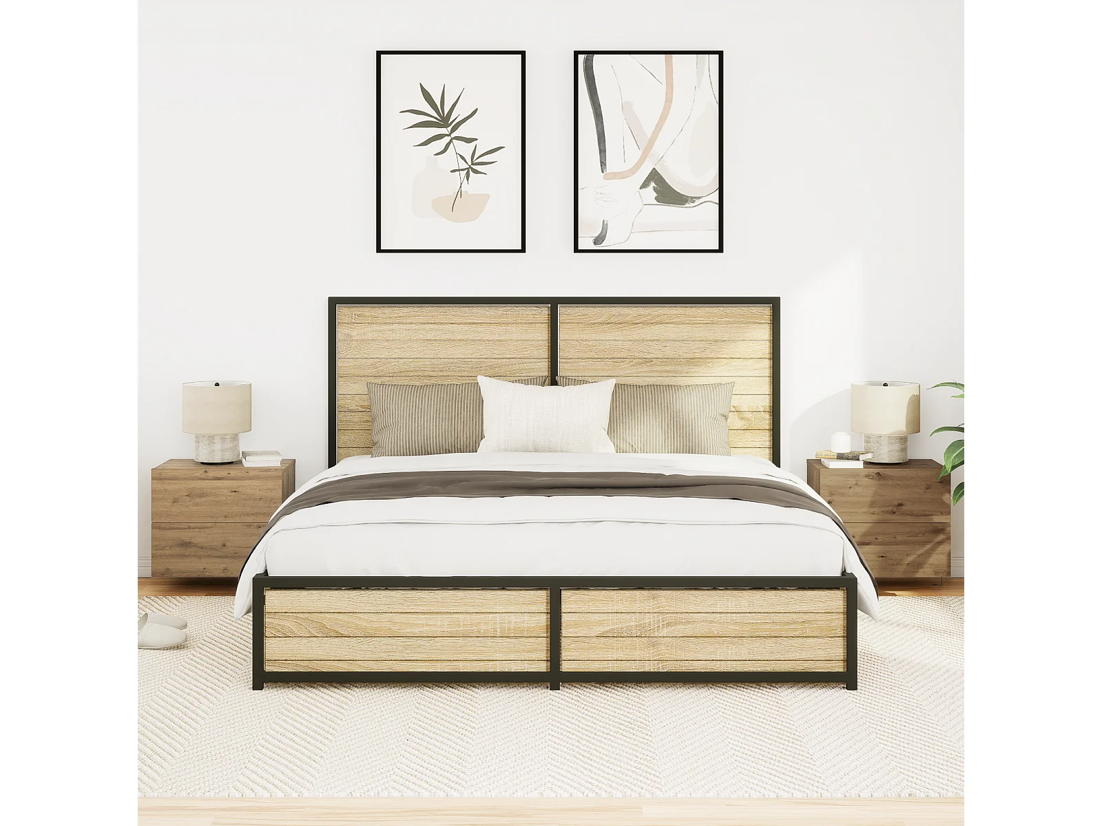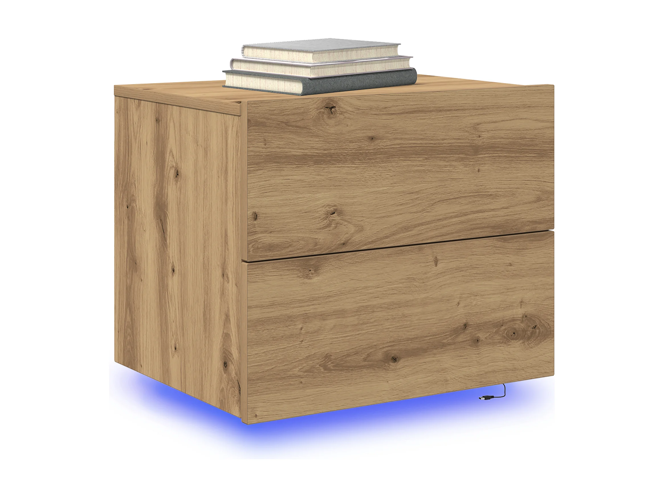 Table de chevet et lumières LED chêne fumé bois d'ingénierie