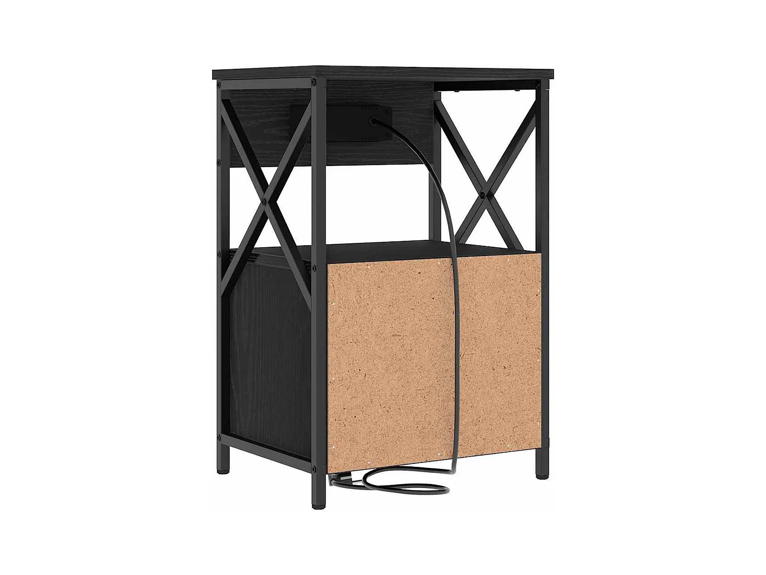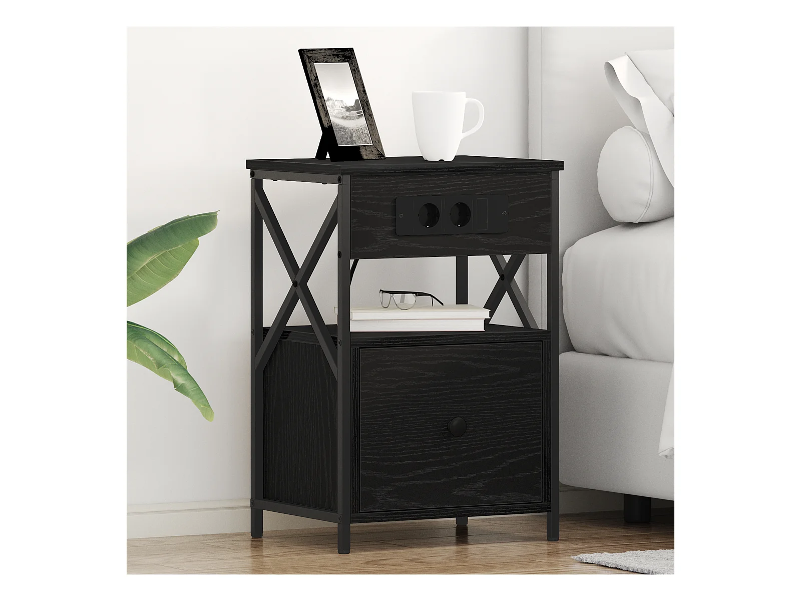 Table de nuit avec station de chargement avec tiroir Chêne noir