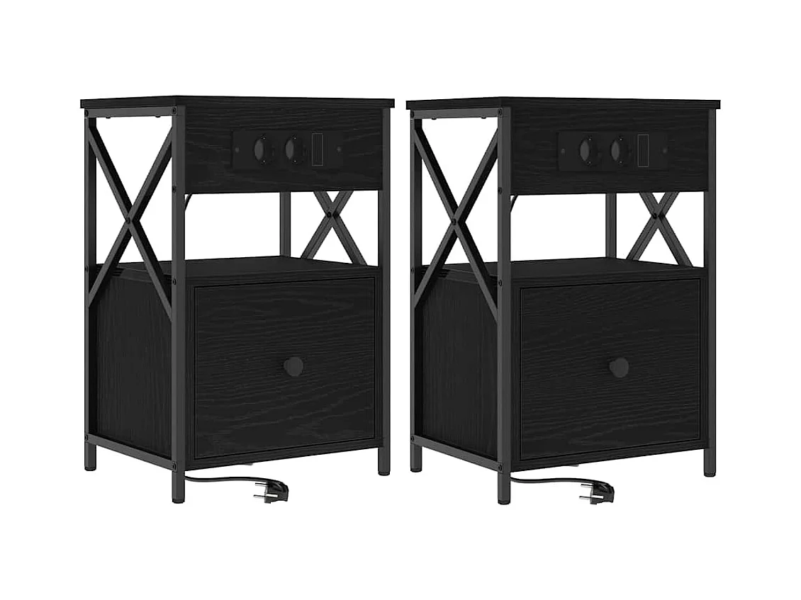 Table de nuit avec station de chargement 2 pcs Chêne noir