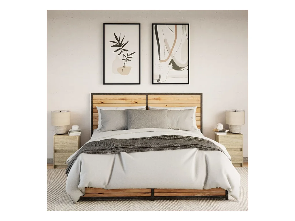 Armoires de chevet et lumières LED 2 pcs chêne sonoma