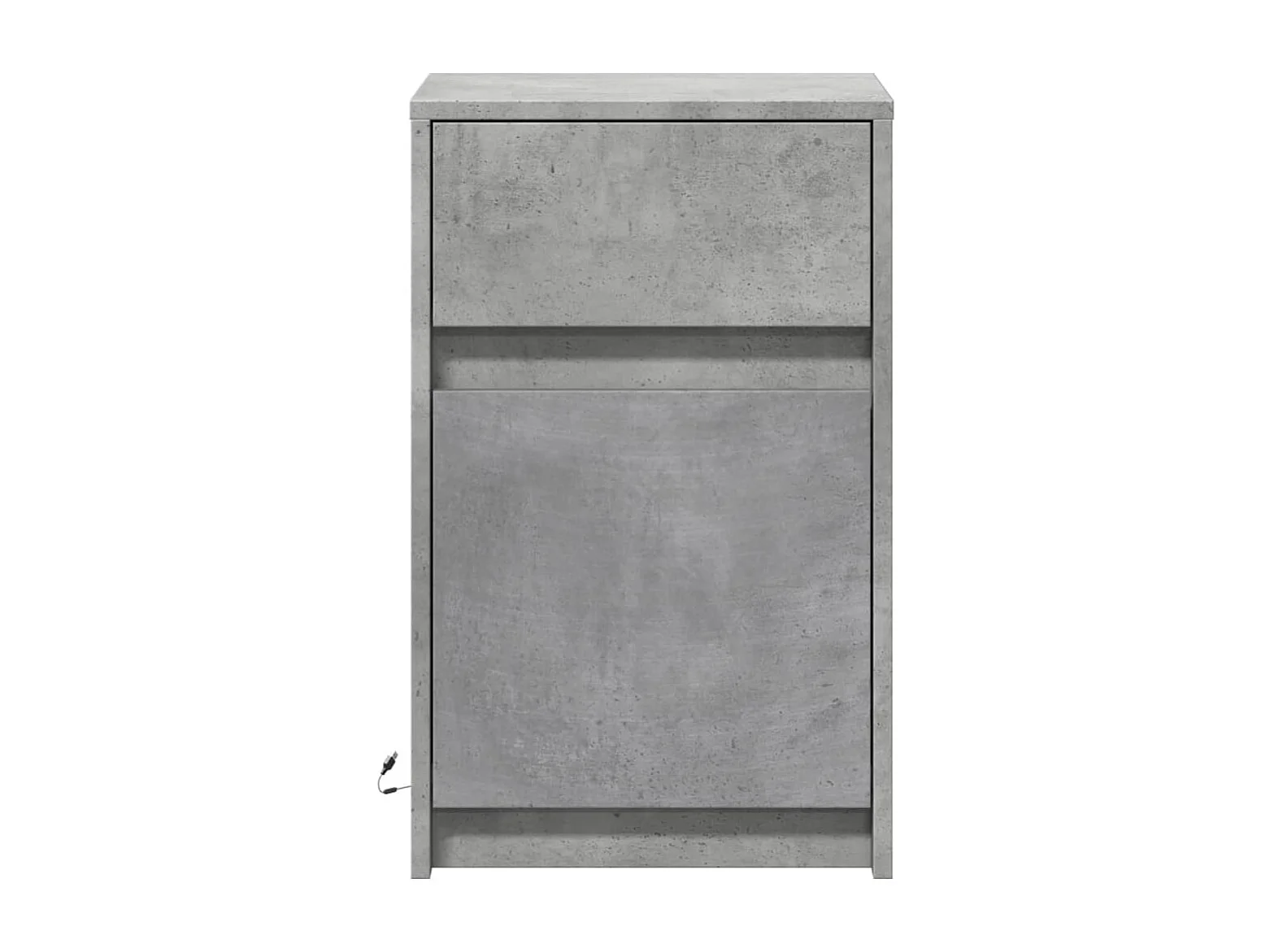 Armoire de chevet et lumières LED gris béton bois d'ingénierie