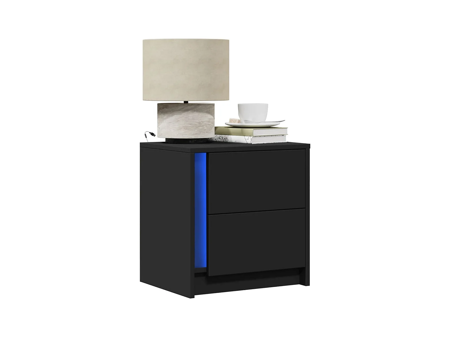 Tables de chevet avec lumières LED 2 pcs noir 35x39x55 cm