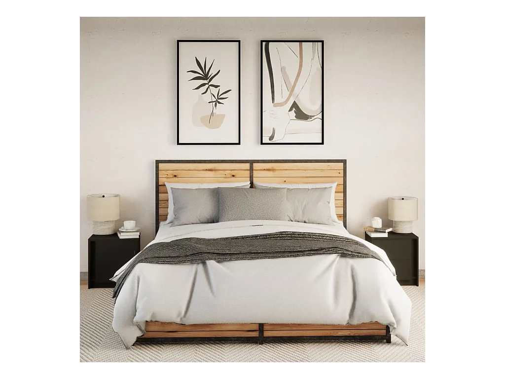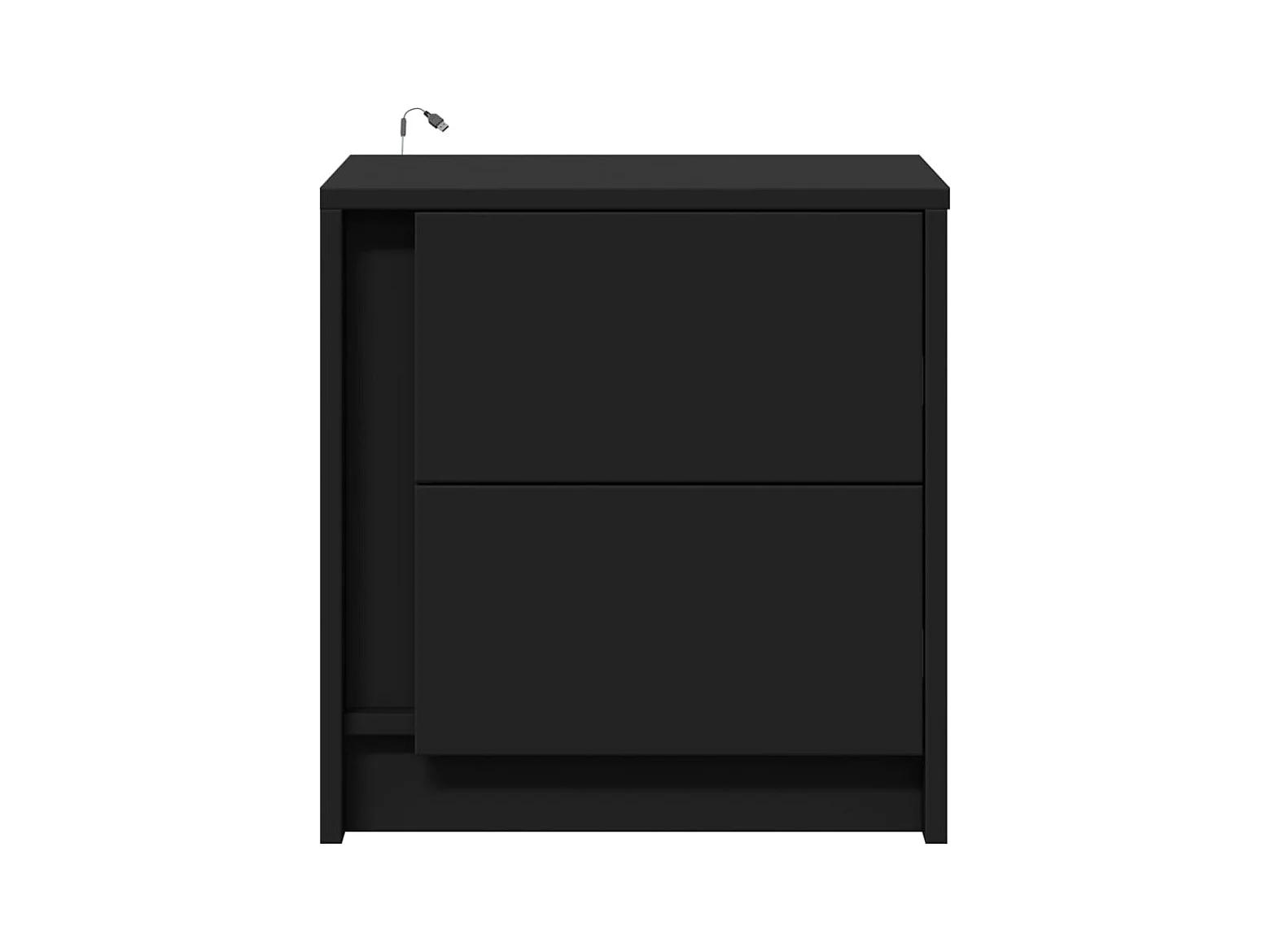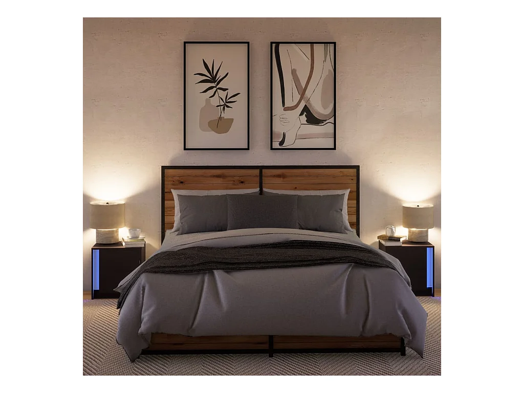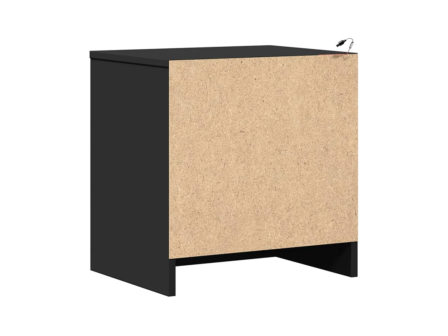 Armoires de chevet et lumières LED 2 pcs noir bois d'ingénierie