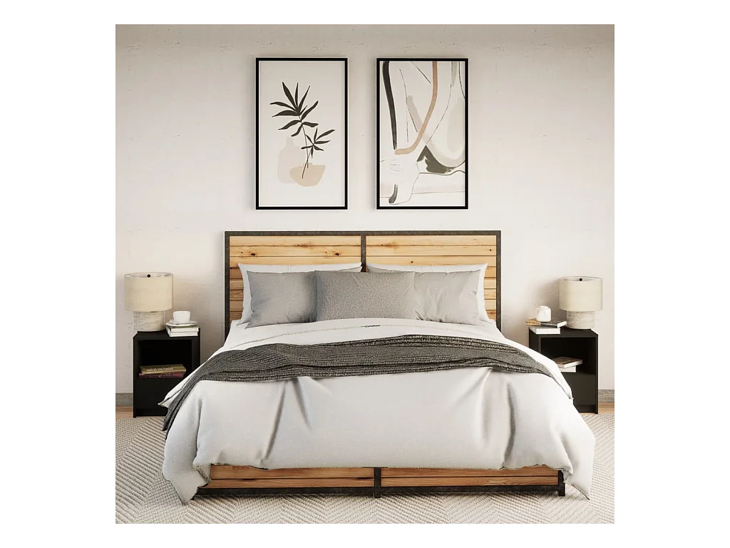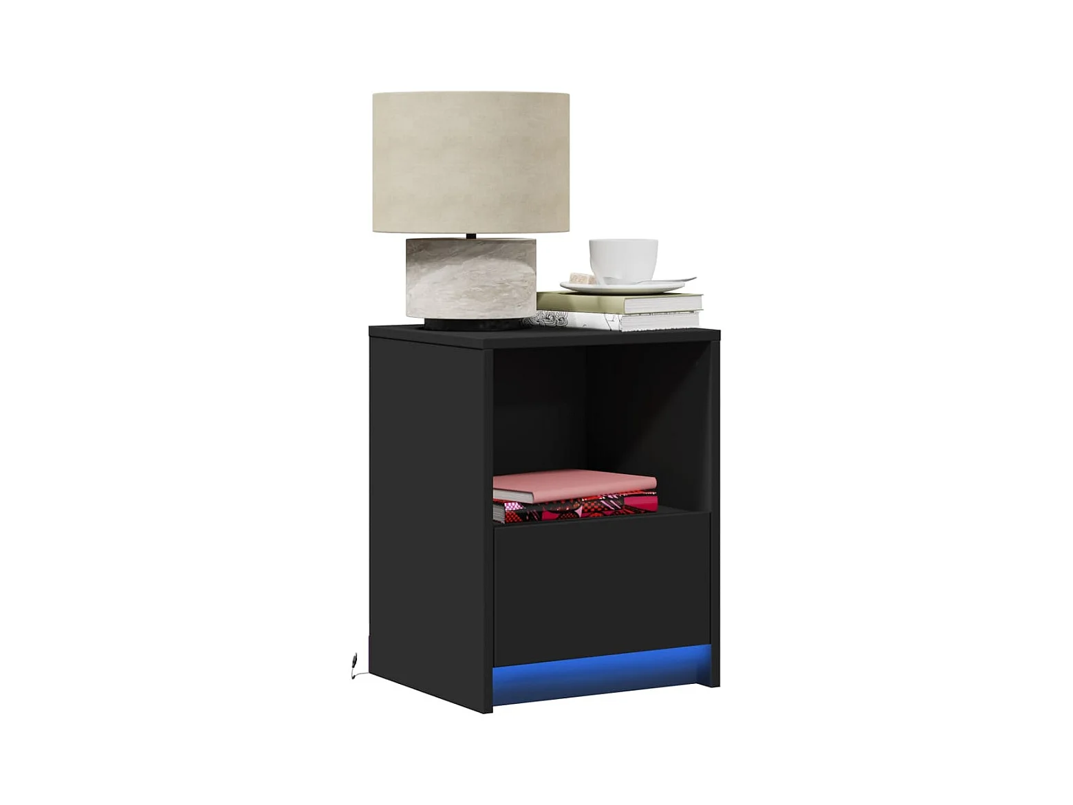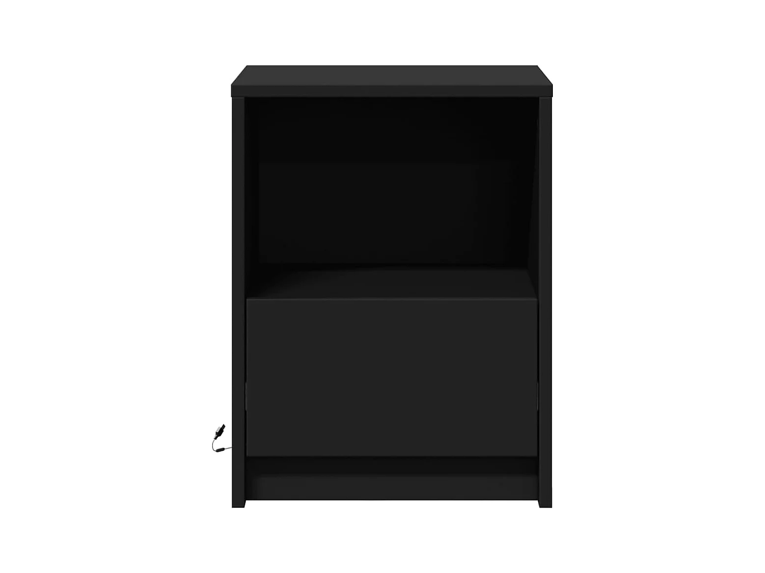 Armoires de chevet et lumières LED 2 pcs noir bois d'ingénierie