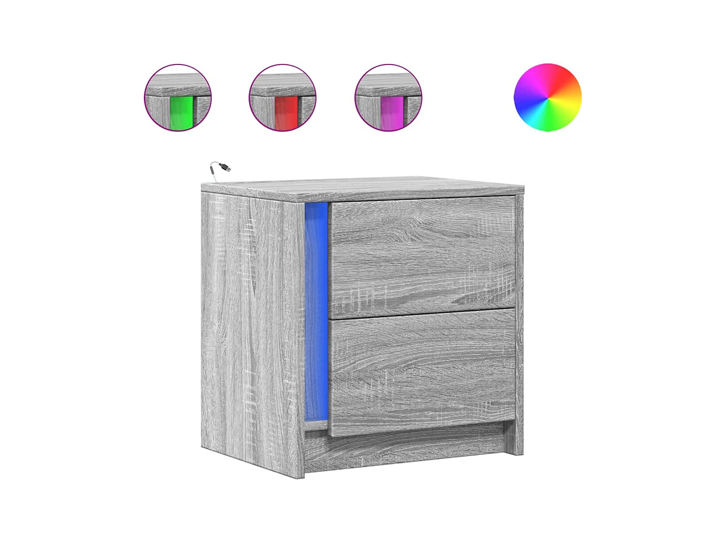 Armoires de chevet avec lumières LED 2 pcs sonoma gris