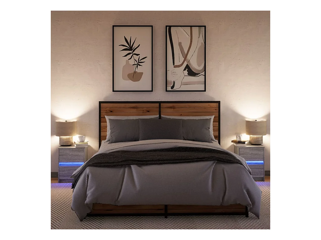 Armoires de chevet et lumières LED 2 pcs sonoma gris