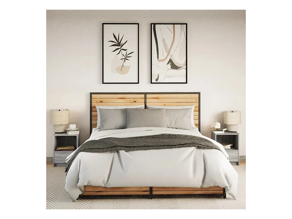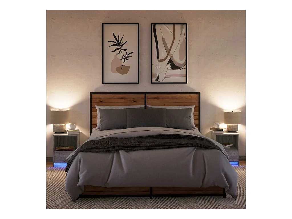 Armoires de chevet et lumières LED 2 pcs sonoma gris