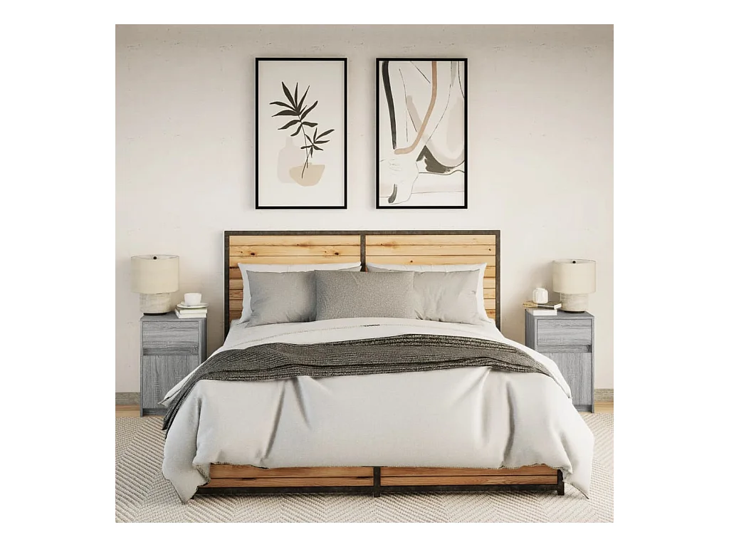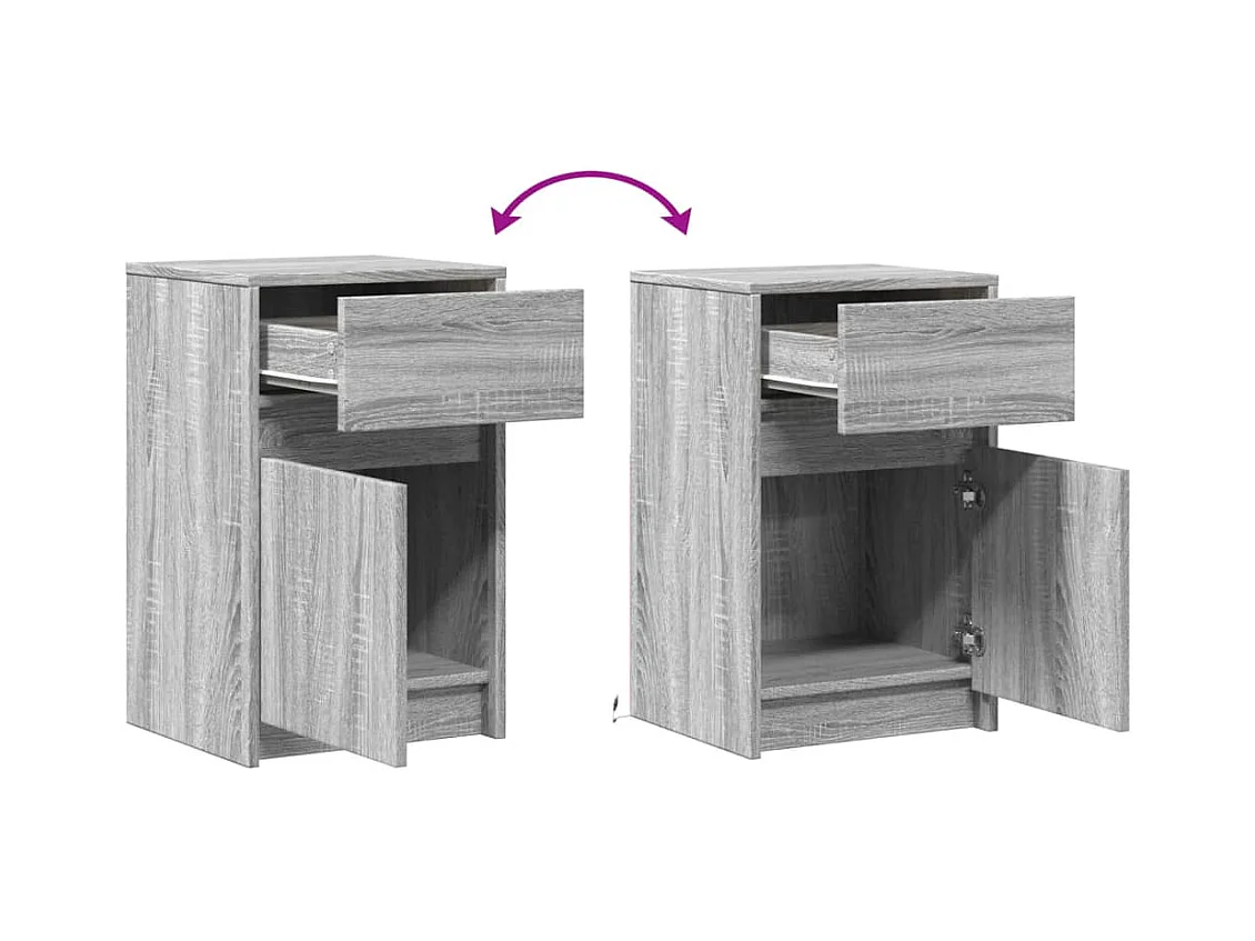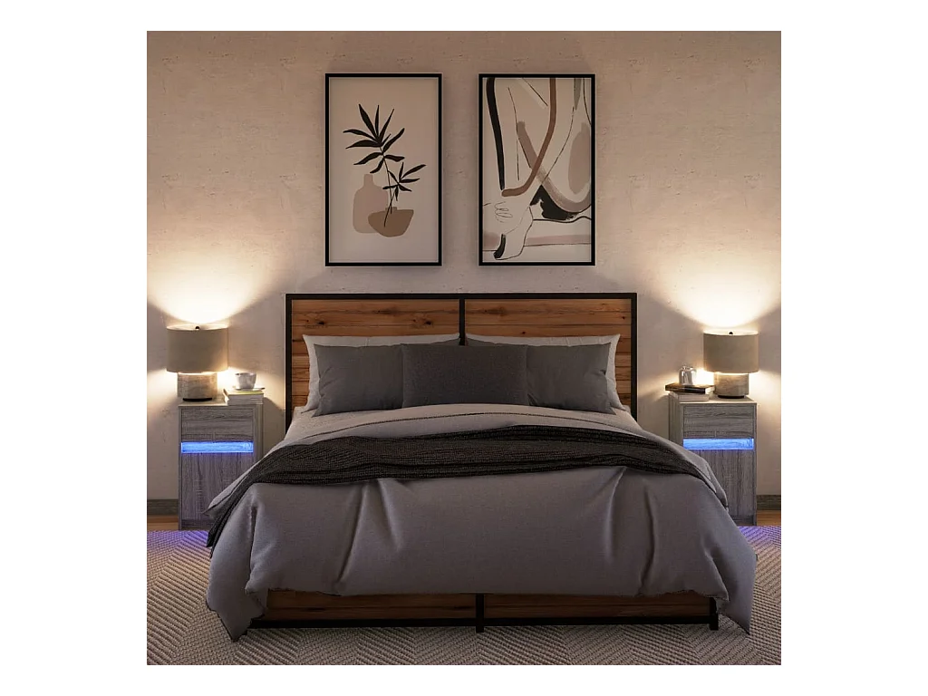 Armoires de chevet et lumières LED 2 pcs sonoma gris