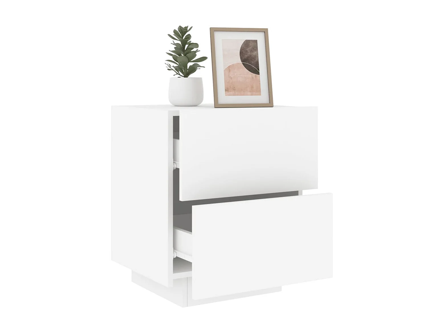 Armoires de chevet et lumières LED 2pcs blanc bois d'ingénierie