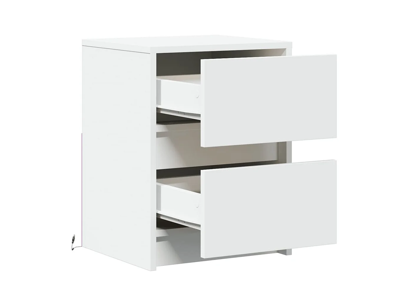 Armoires de chevet et lumières LED 2pcs blanc bois d'ingénierie