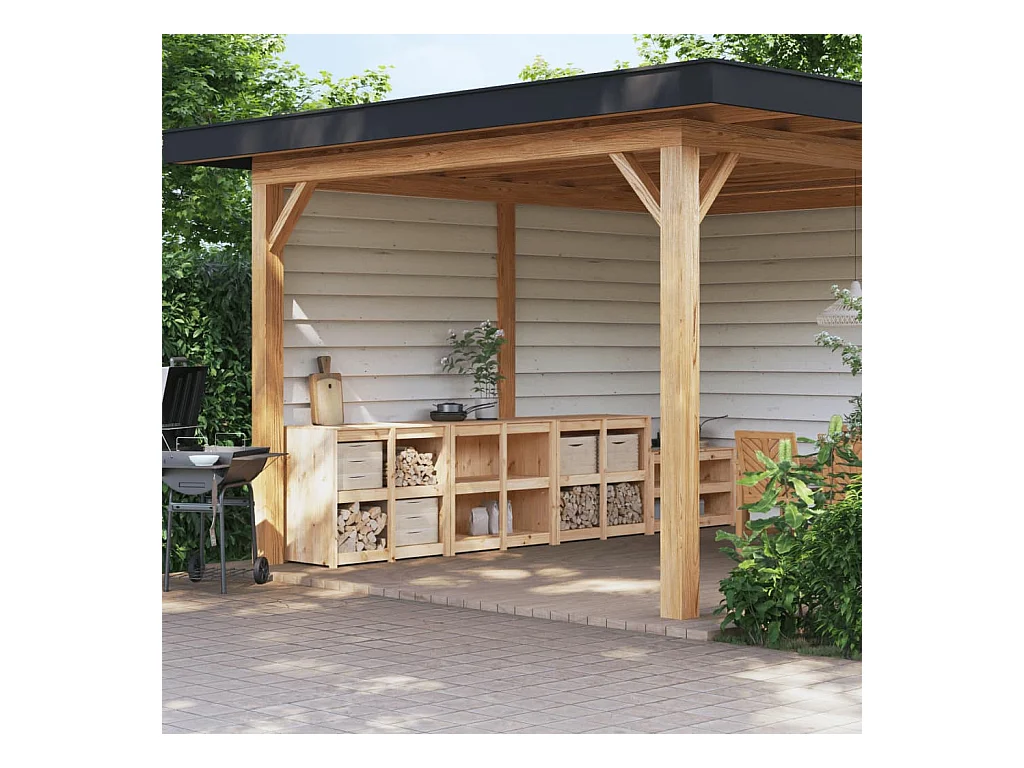 Armoires de cuisine d'extérieur 3 pcs bois de pin massif