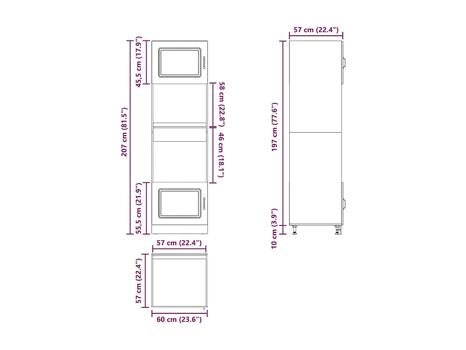 Meuble micro-ondes "Lyon" Chêne Sonoma 60 x 57 x 207 cm Bois d'ingénierie