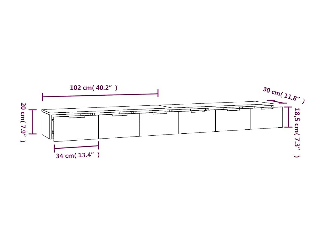 Armoires murales 2 pcs Chêne sonoma 102x30x20 cm