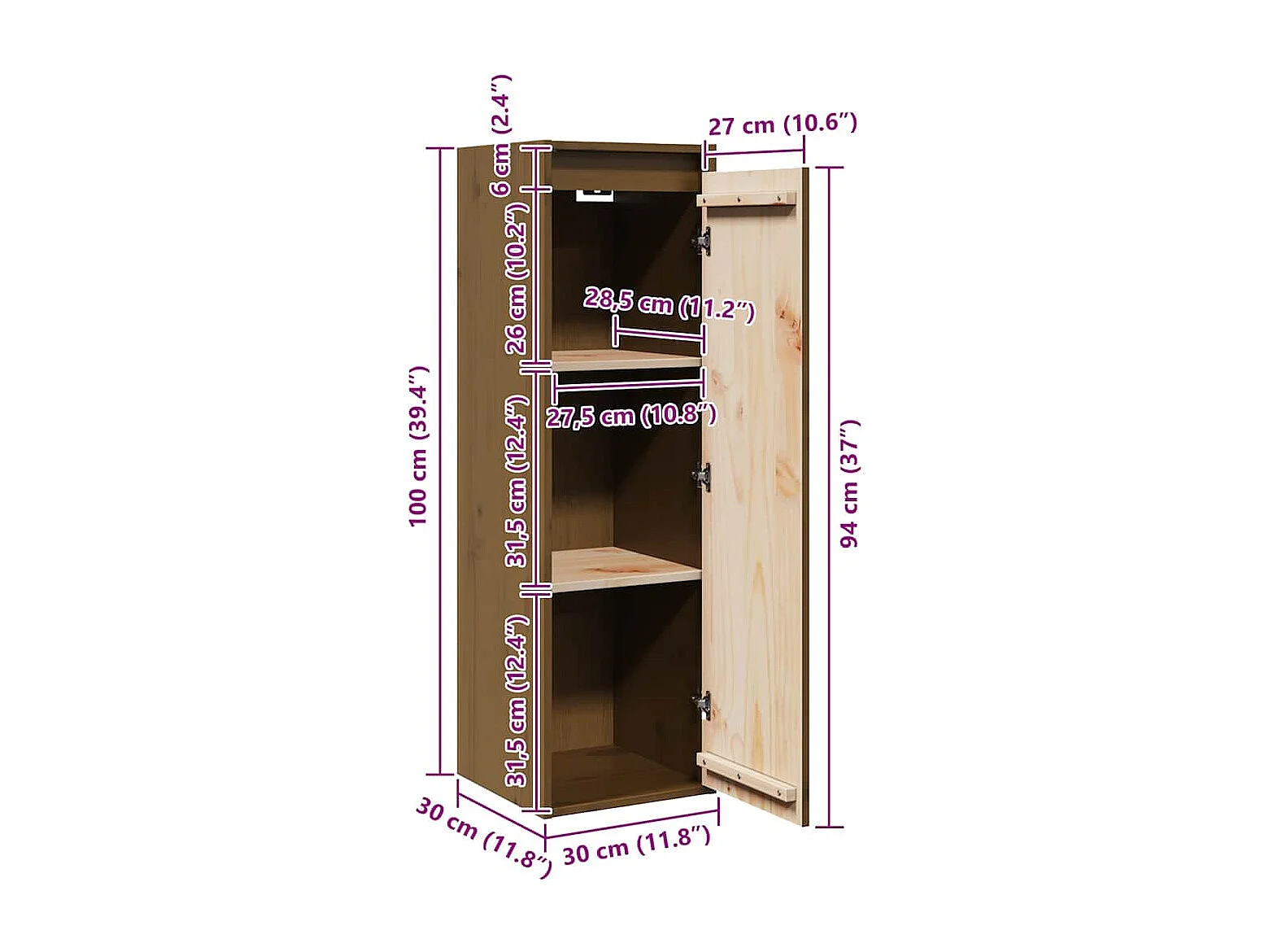Armoire murale Marron miel 30x30x100 cm Bois de pin massif