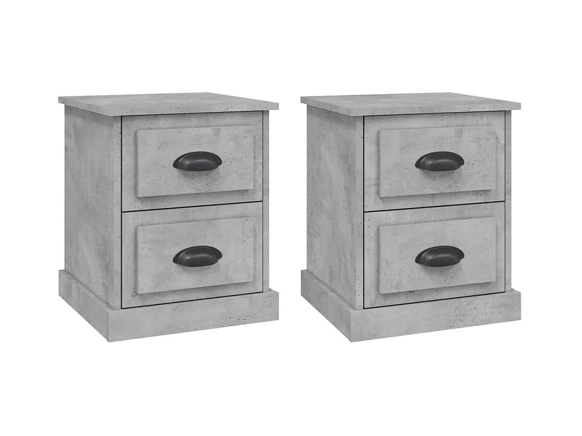 Mikael Tables de chevet 2pcs gris béton 40x35x47,5cm bois d’ingénierie
