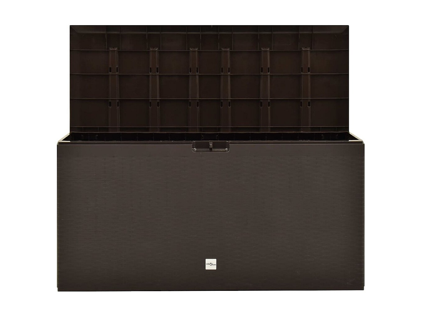 Boîte de rangement jardin coussin de siège marron 125 L PP