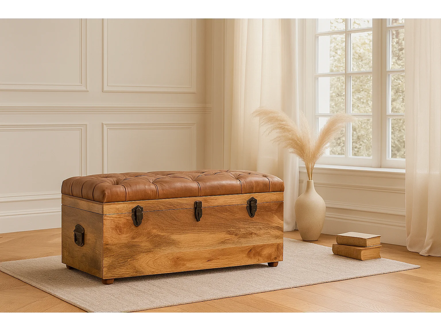 Coffre de rangement Buffalo Hide Artisan Furniture finition chêne, marron