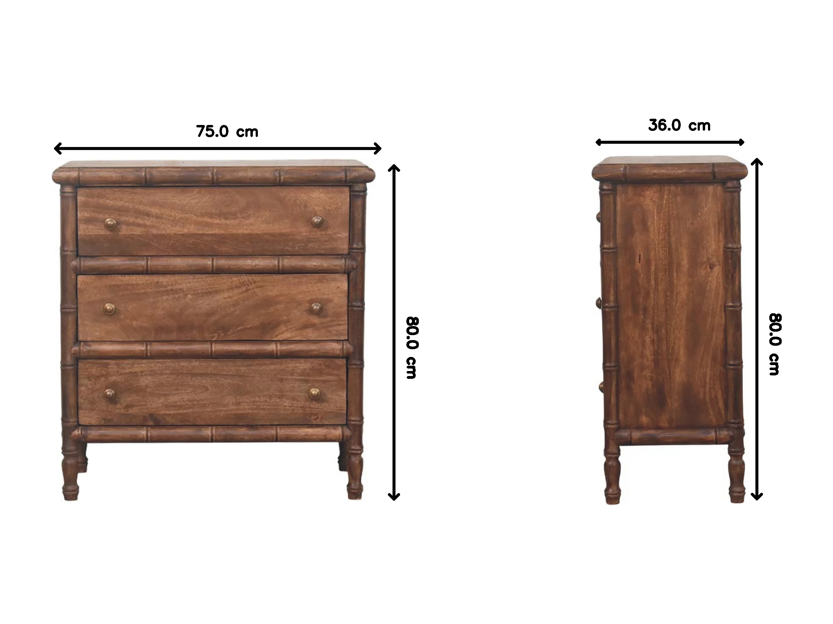 Commode sculptée en bambou Artisan Furniture, 3 tiroirs, brun chaud