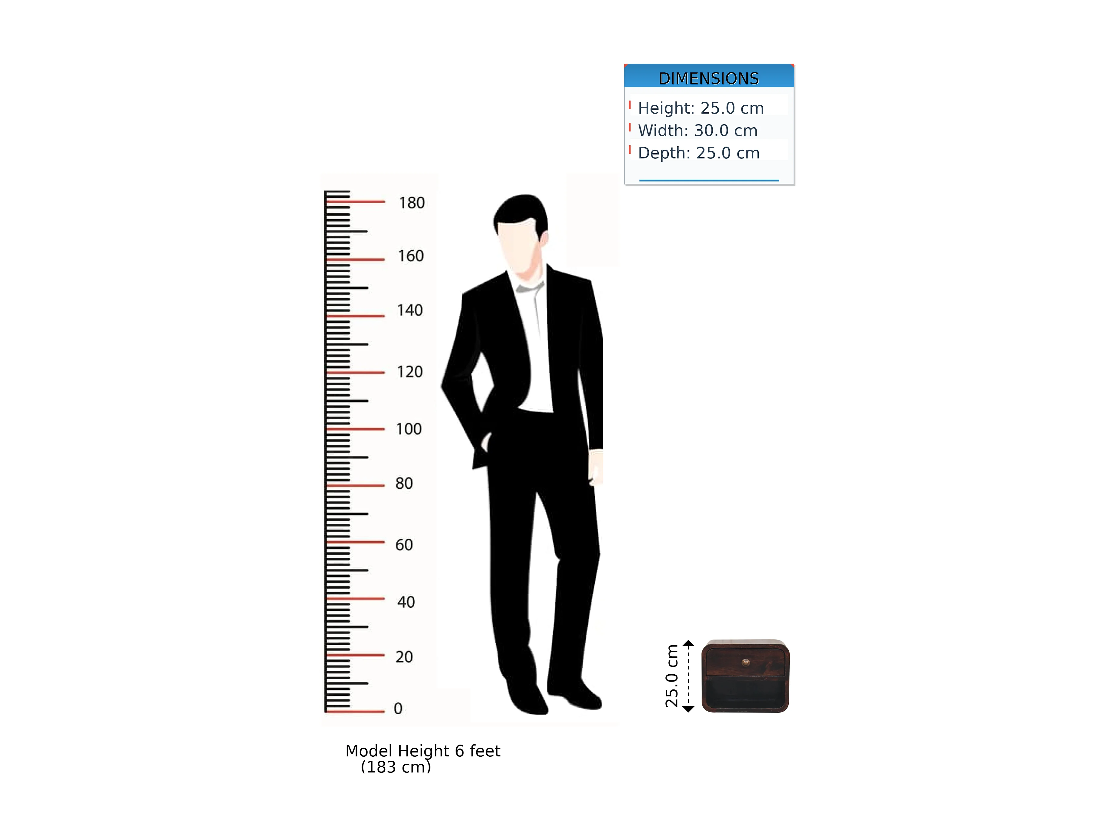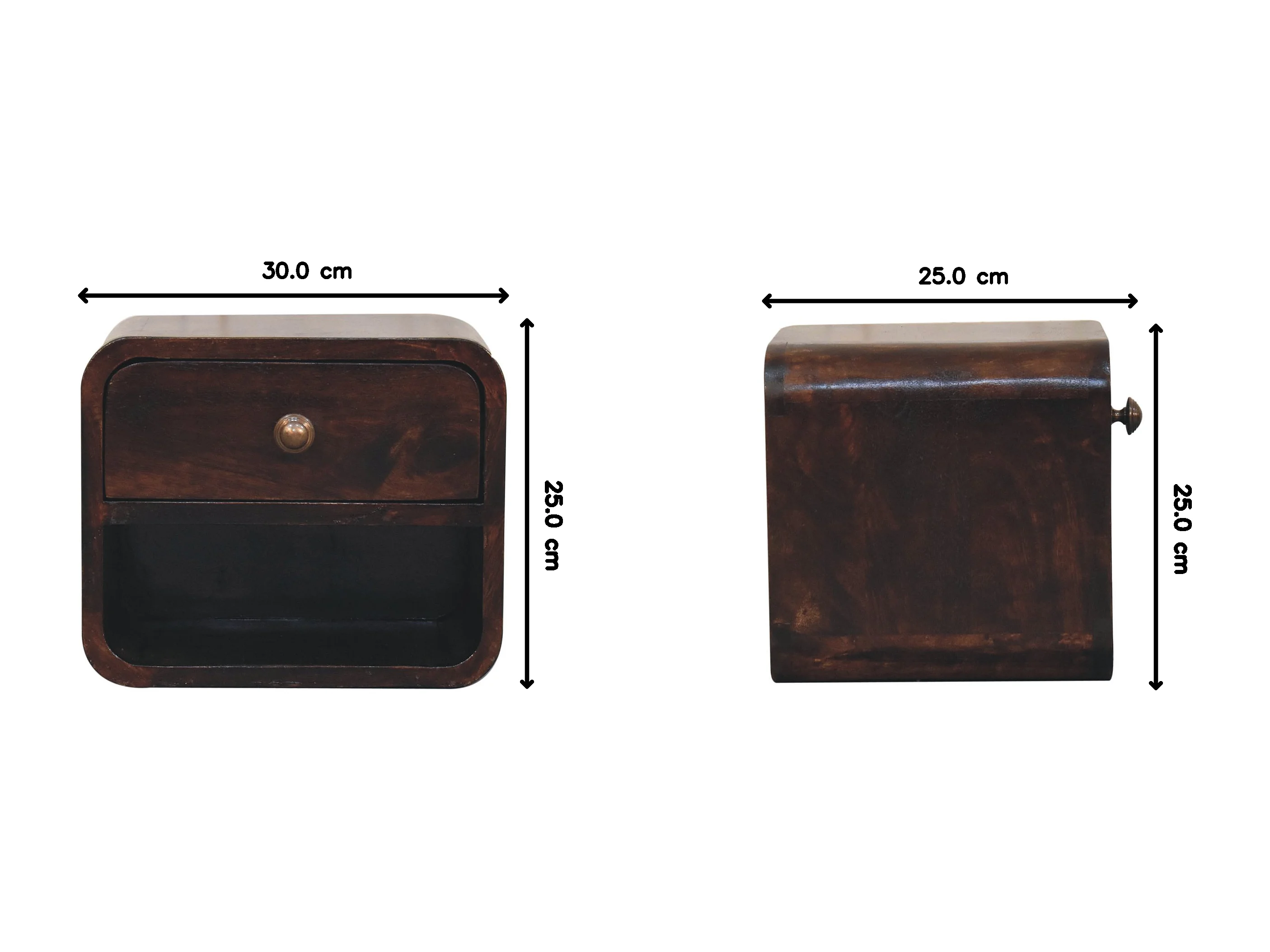 Table de chevet murale Mini courbée Artisan Furniture en noyer California, avec compartiment ouvert, 1 tiroir, brun foncé