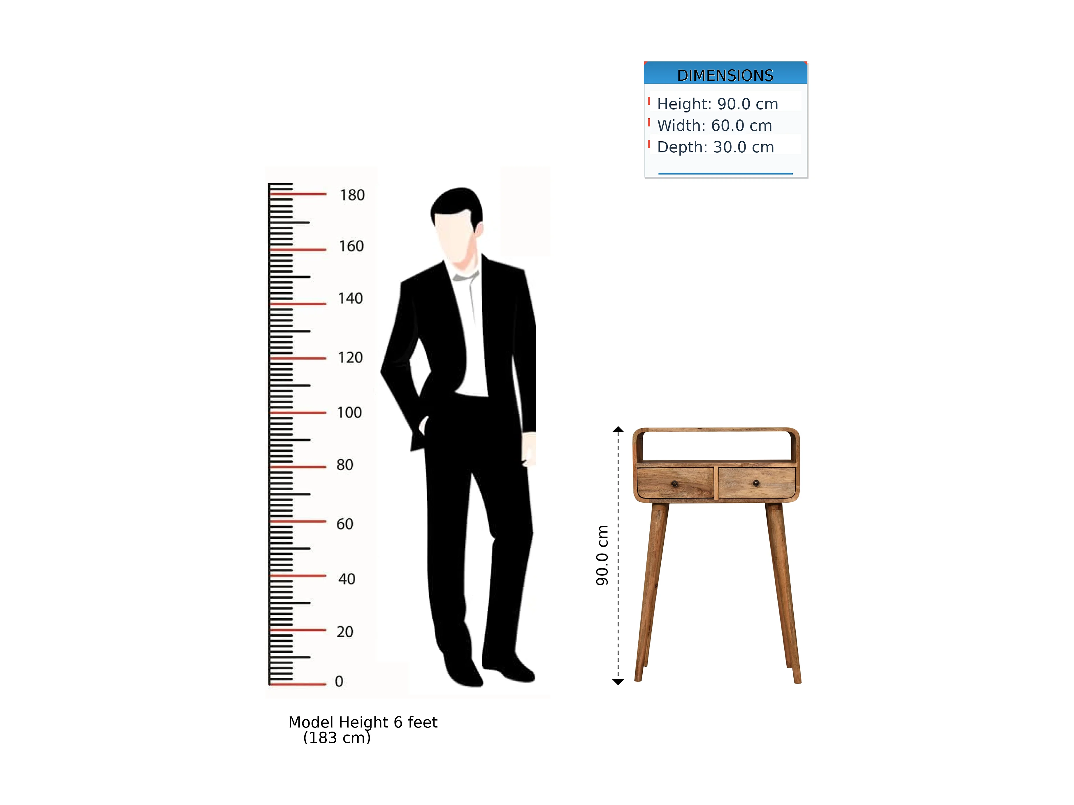 Artisan Furniture Bois massif Petite Console Courbée Finition Chêne Clair