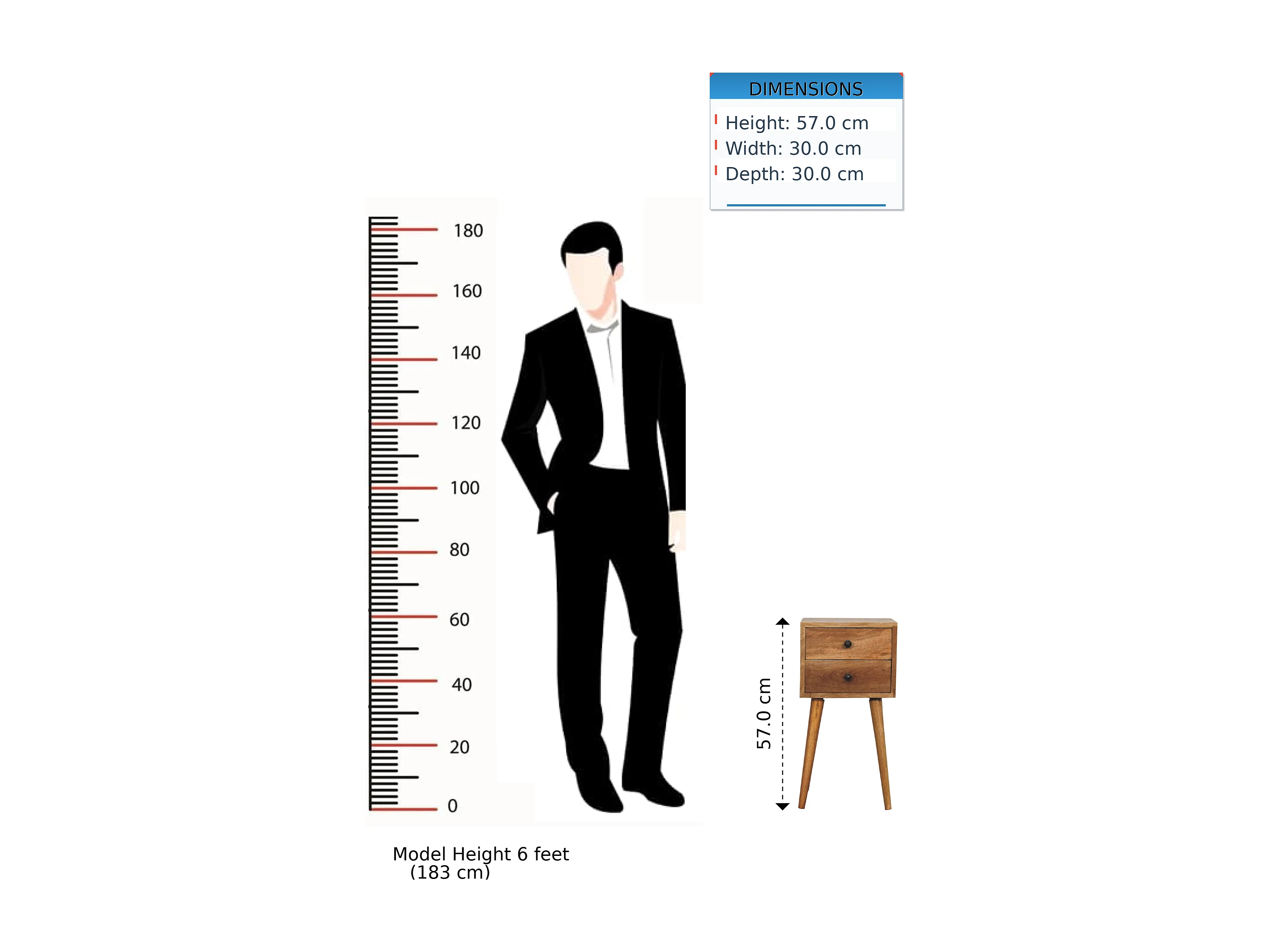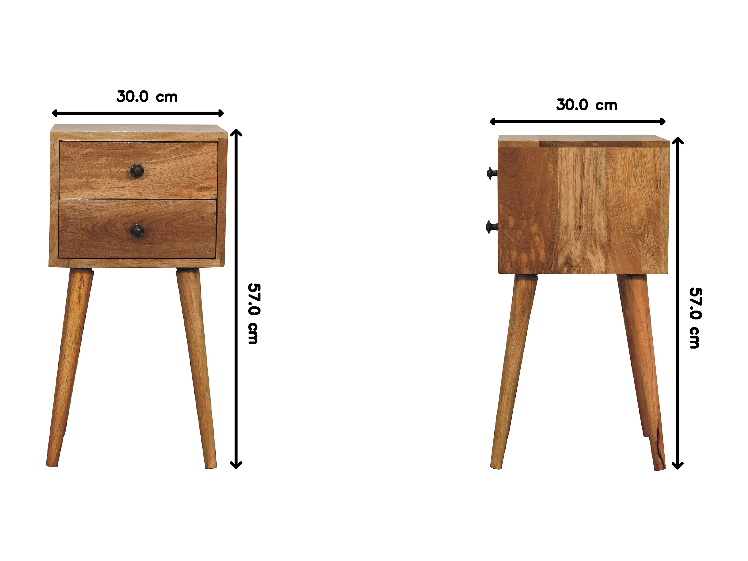 Table de chevet Mini Artisan Furniture finition chêne, 2 tiroirs, marron clair