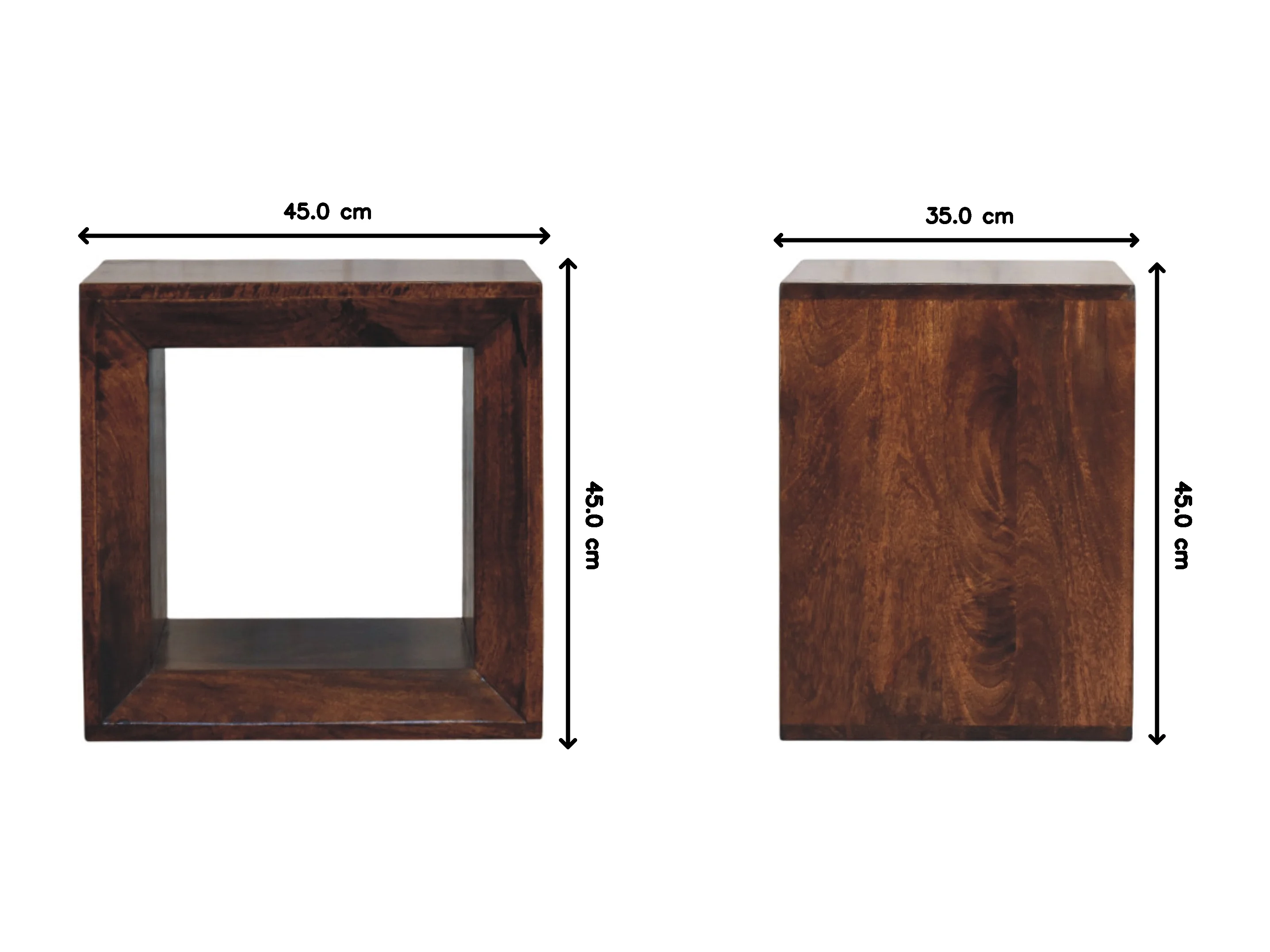 Table d'appoint Solis ouverte Artisan Furniture en noyer California, 1 compartiment ouvert, finition brun