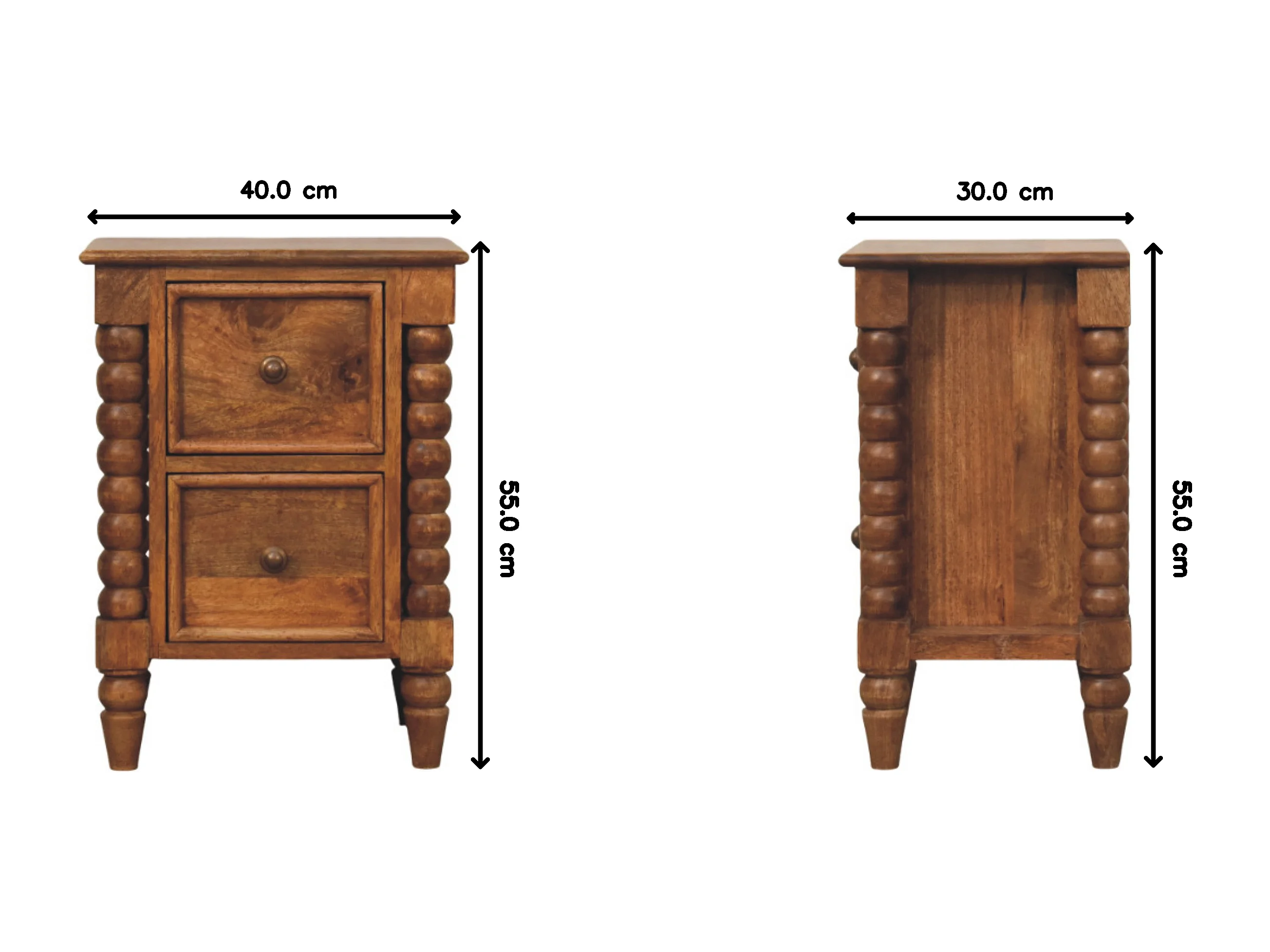 Artisan Furniture Bois massif Table de Chevet Barley Twist à 2 Tiroirs