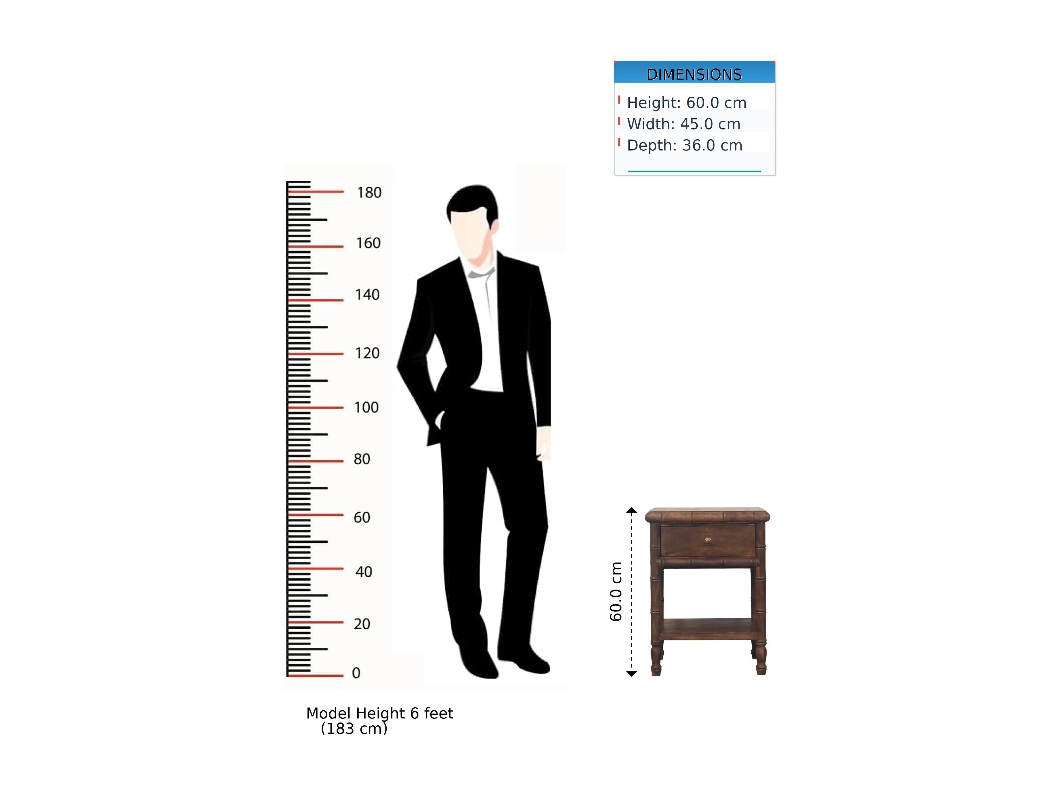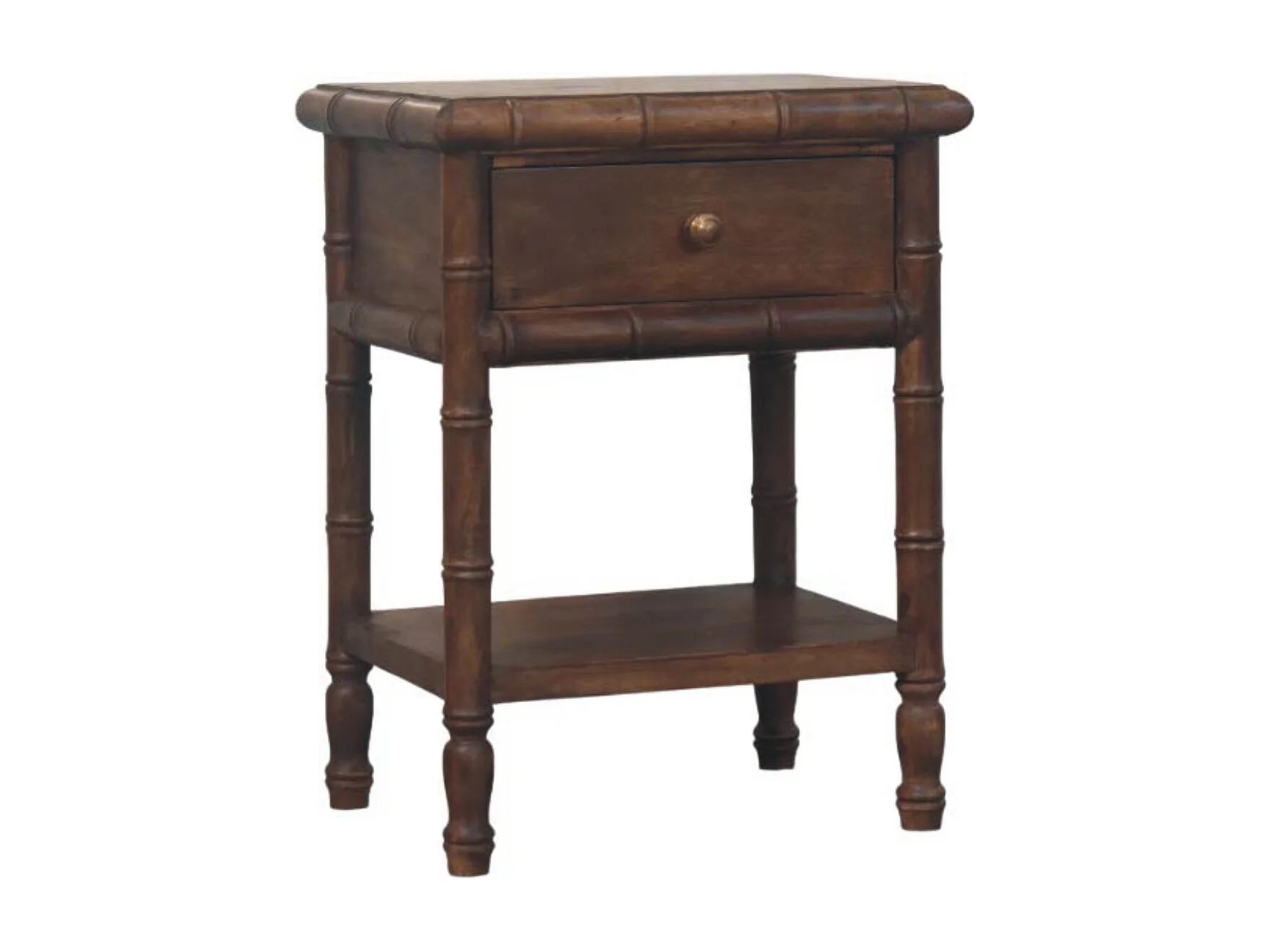 Table de chevet sculptée en bambou Artisan Furniture, 1 tiroir, 1 étagère ouverte, marron