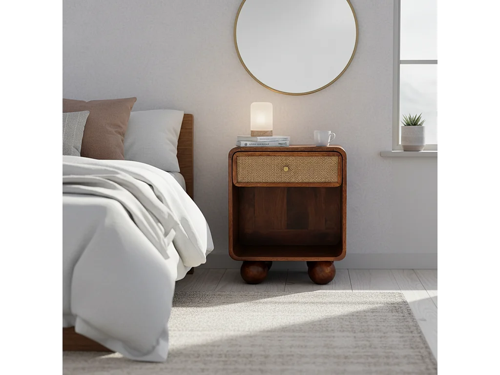 Table de chevet tressée ouverte en châtaignier Artisan Furniture, 1 tiroir, 1 compartiment ouvert, marron