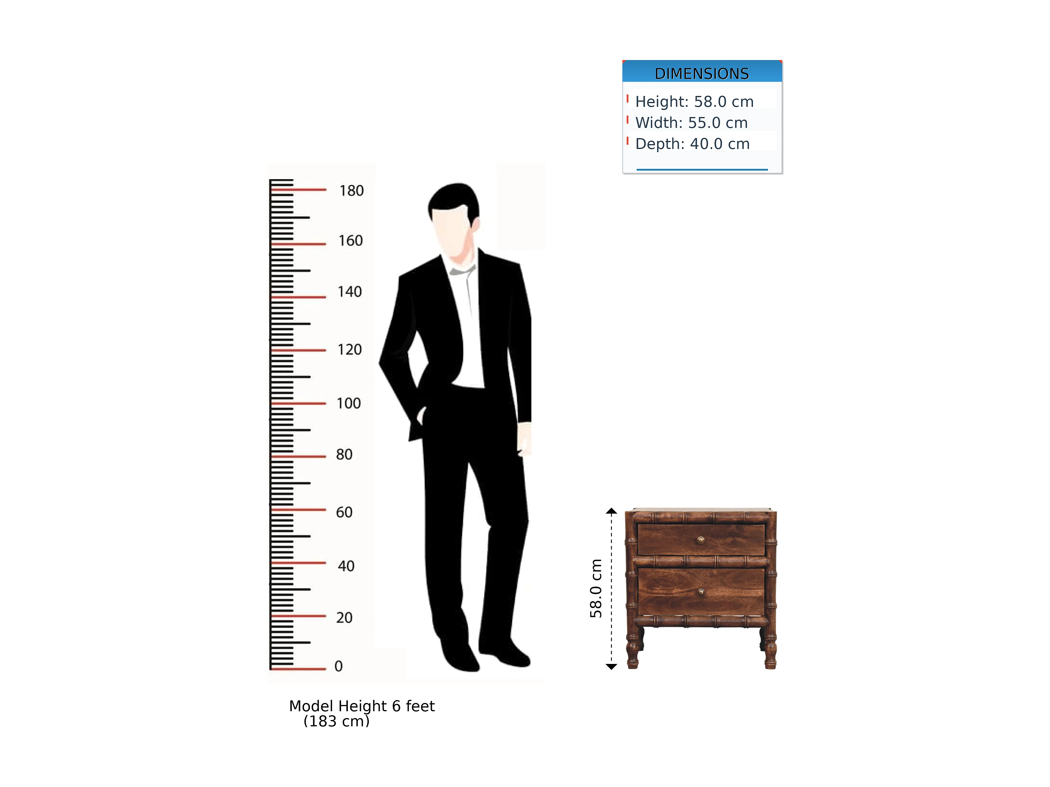 Table de chevet avec cadre en bambou Artisan Furniture, finition Amande Rôtie, 2 tiroirs, marron