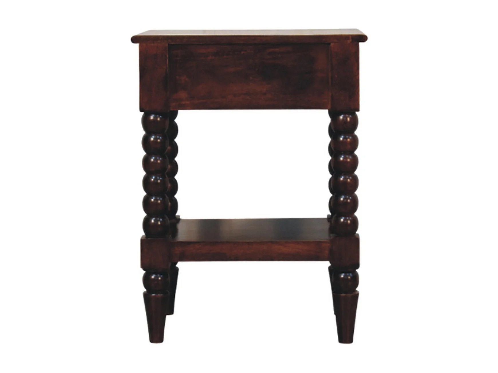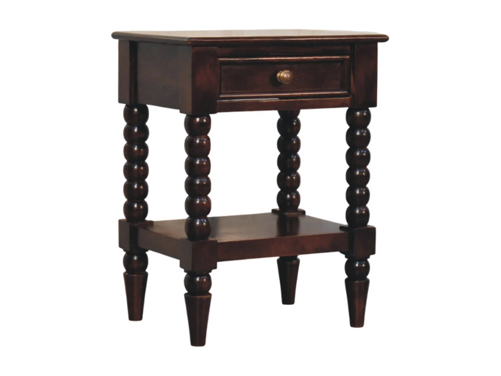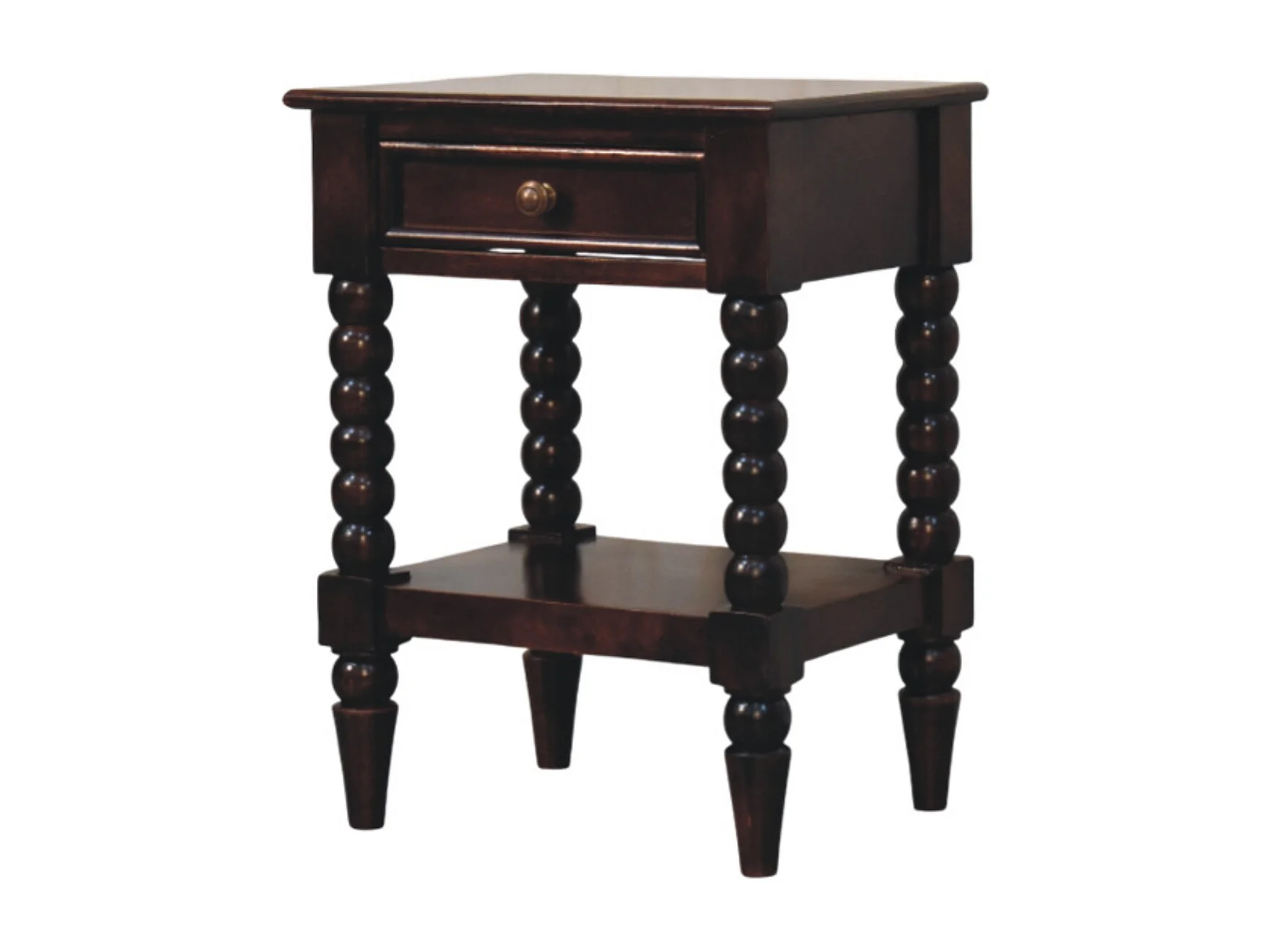 Table de chevet Spindle en bois Winewood Artisan Furniture, 1 tiroir, 1 compartiment ouvert, brun foncé