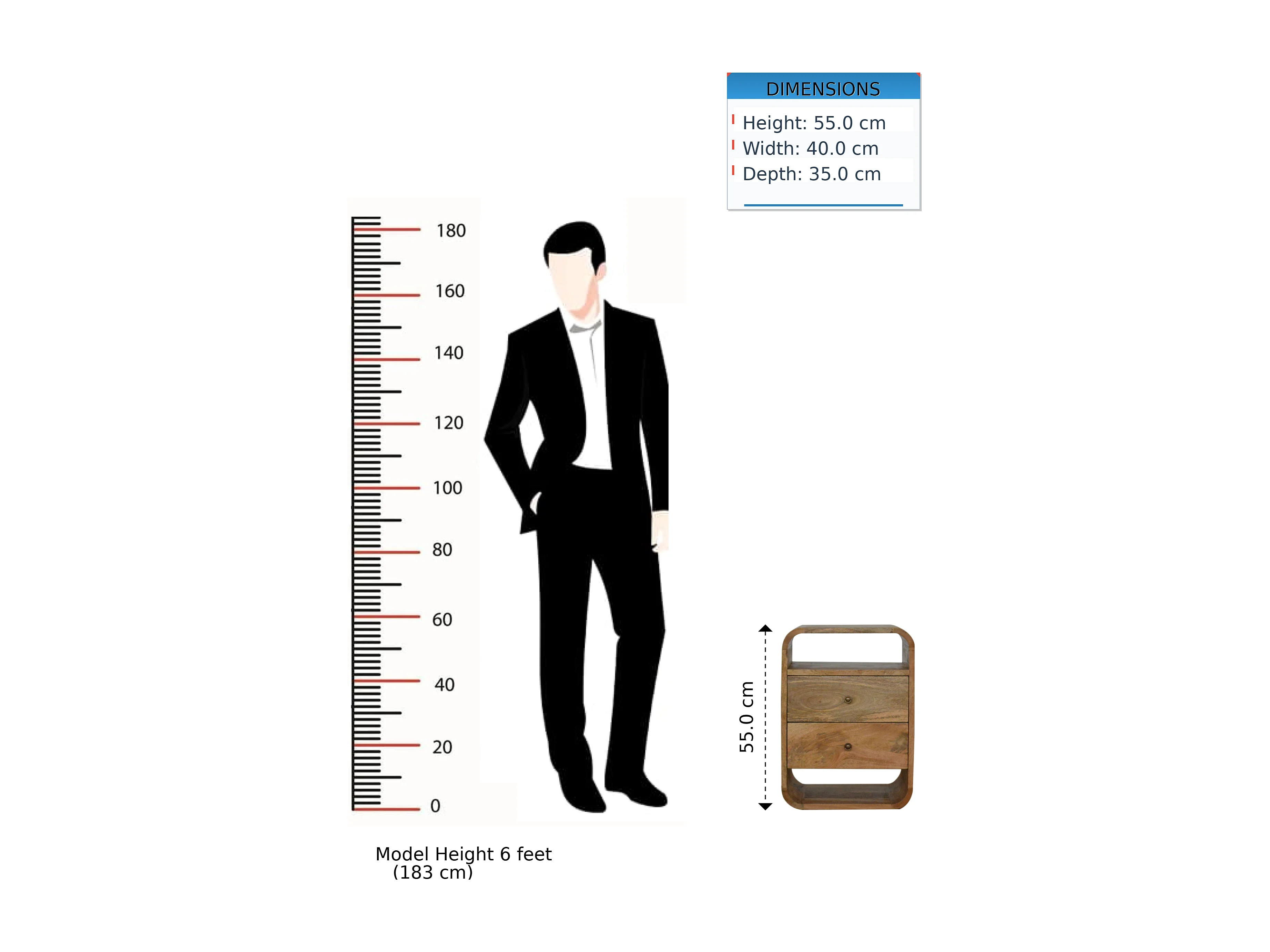 Table de chevet London Artisan Furniture, 2 tiroirs, 2 compartiments ouverts, marron