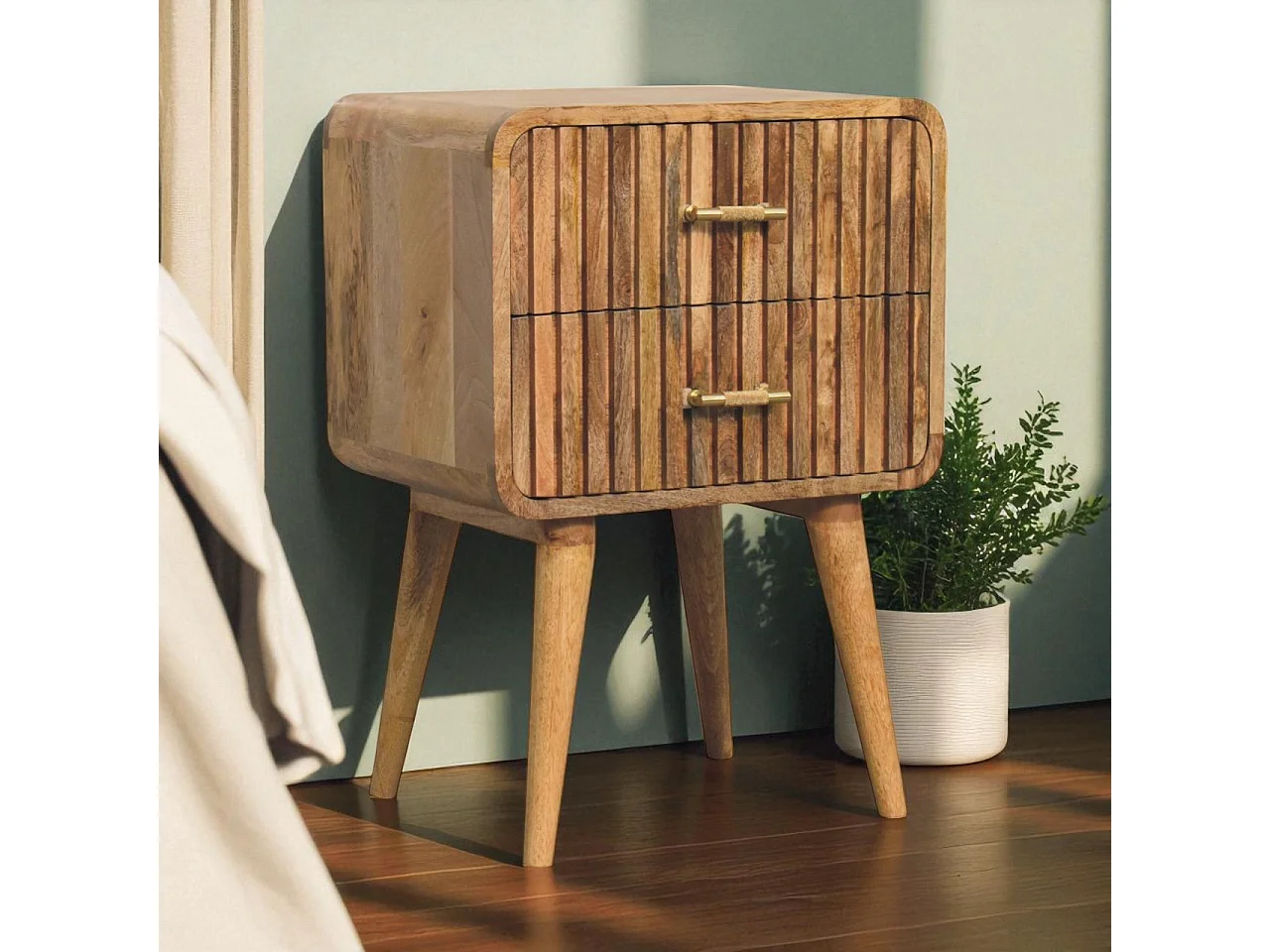 Table de chevet T-bar à reliefs Artisan Furniture, 2 tiroirs, marron