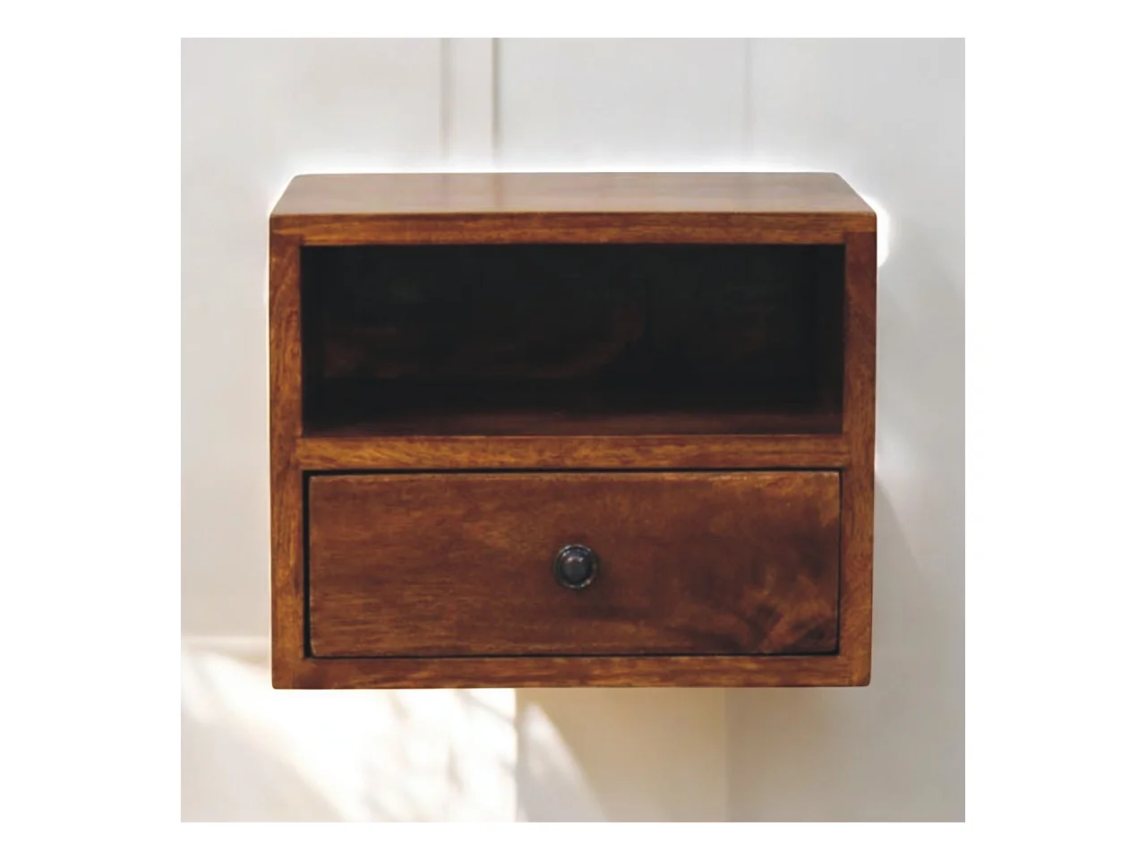 Artisan Furniture Table de nuit murale Solis 1 tiroir en bois massif finition châtaignier