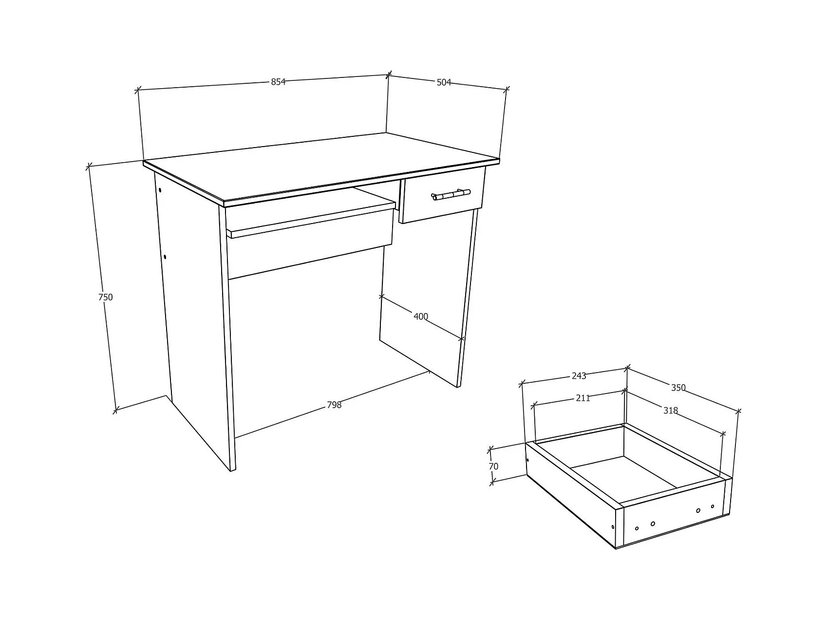 Desk Arusa White H. 75 x W. 85 x D. 50 cm