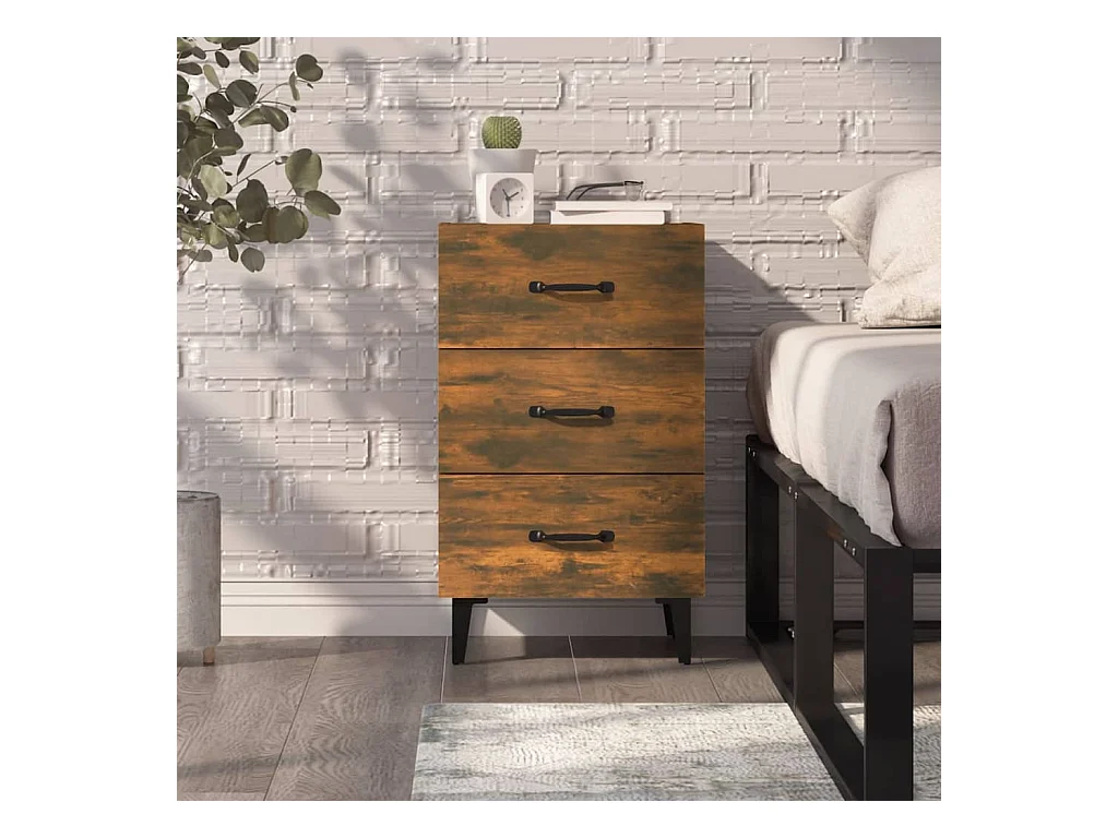 Darby Table de chevet chêne fumé 40x35x70 cm bois d'ingénierie