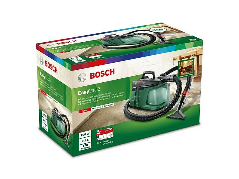Aspirateur de Poussières Bosch EasyVac 3 - 700W, Débit 35 l/s, Dépression 240 mbar, Cuve 2 L