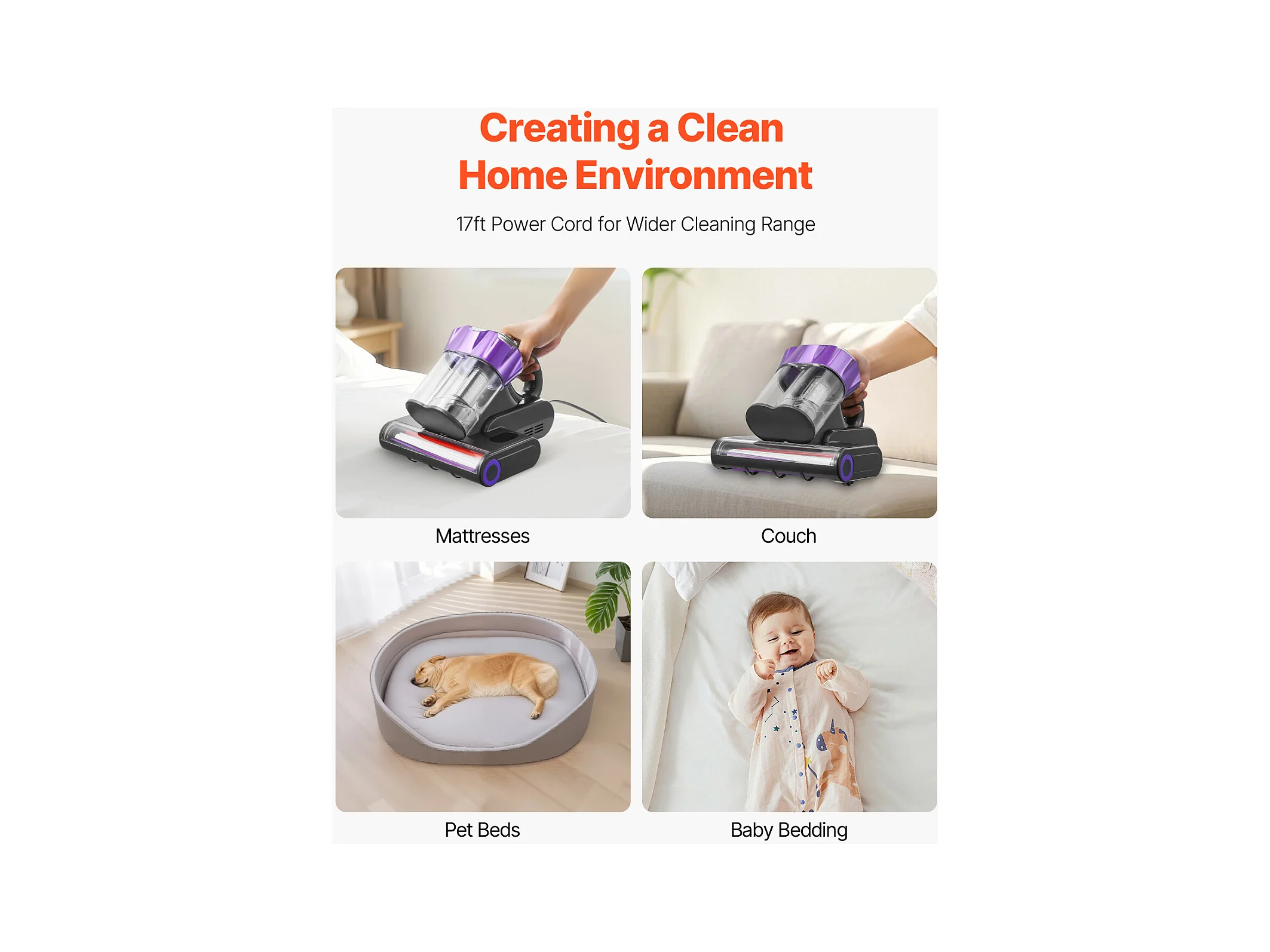 Aspirateur Matelas Anti-acariens SucceBuy 550 W, Aspirateur à Main Avec Aspiration Puissante 18 kPa, Double Bac à Poussière, Filtre HEPA Et Chauffage