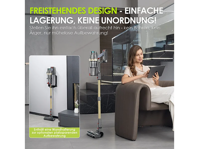 Aspirateur sans fil NETTLIFE, 45000 Pa/550W/60 min, avec brosse anti-emmêlement et moteur sans balais, aspirateur sans fil autonome, écran tactile LED
