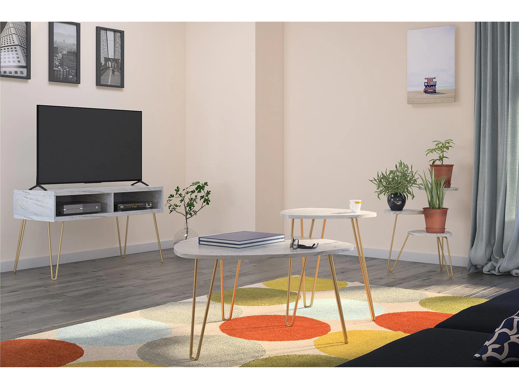 Athena | Tables gigognes en panneaux de particules stratifié PVC marbre blanc