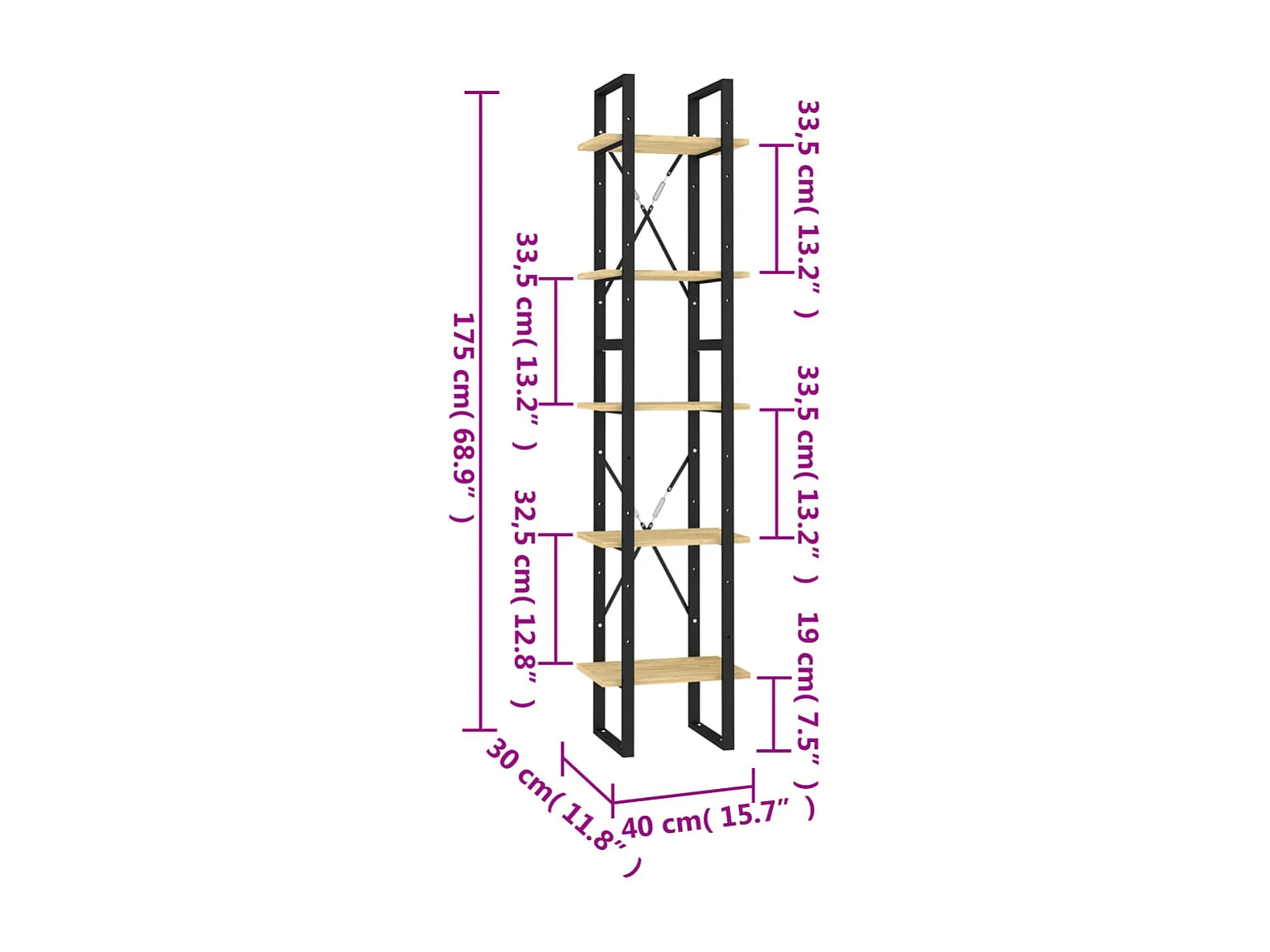Aubagne Bibliothèque à 5 niveaux 40x30x175 cm Bois de pin