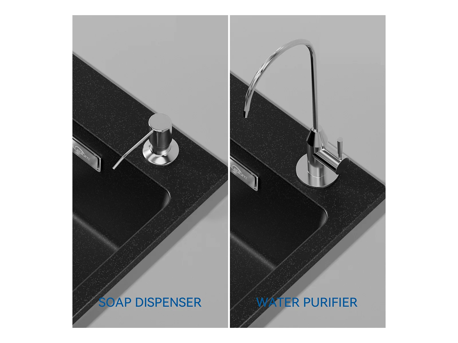 AuraLum Max 1 Bac Évier Cuisine en Granit,55*45*20cm,Kit de Vidage,Noir+Robinet de Cuisine avec Douchette Extractible Rotatif 360 °2 Fonct,EU Modèle
