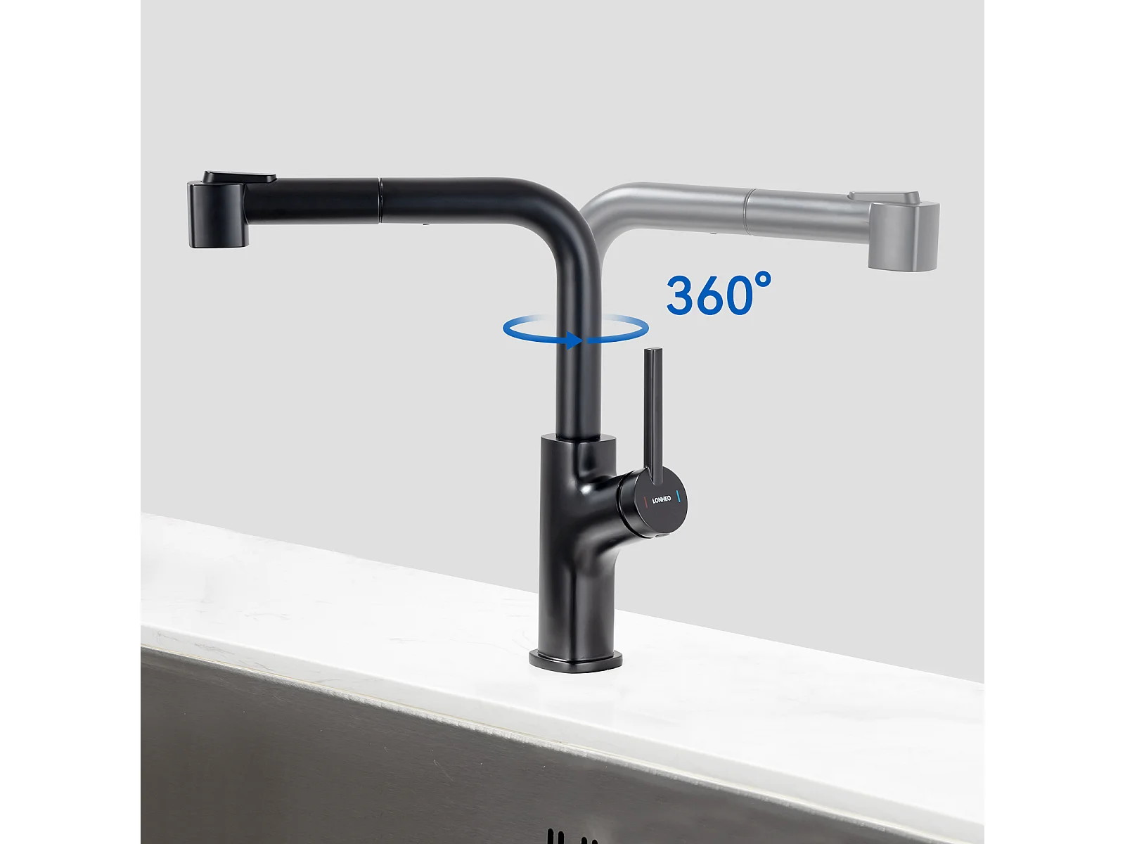 Mitigeur Cuisine Noir avec Douchette Extensible,Robinet Cuisine avec 2 Jets,Mitigeur Evier Rotatif à 360°,Robinet Evier Eau Chaude et Froide