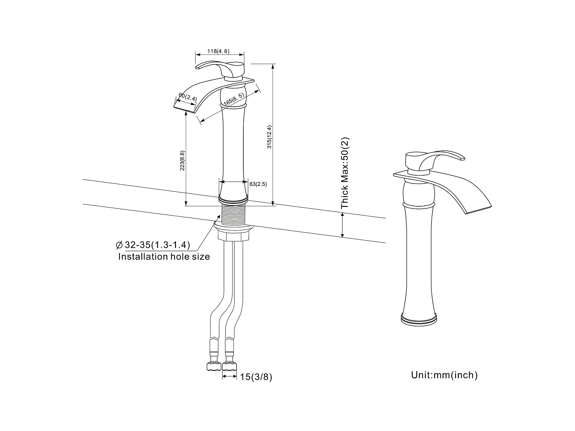 AuraLum Max 2pcs Mitigeur Lavabo Cascade Robinet Monocommand pour Lavabo et Vasque,Haute Bec pour Vasque à Poser -en Laiton,Chromé,EU Modèle