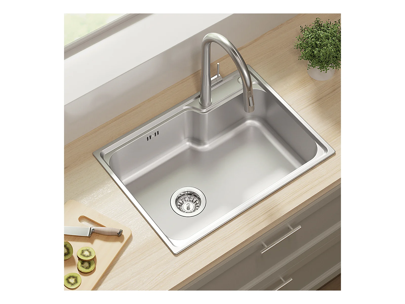 Auralum Max Évier Cuisine 1 Bac 62*45*21CM,en Acier Inoxydable PVD Nano Vasque à Poser,Argent+Mitigeur de Cuisine avec Douchette Extractible,Chromé