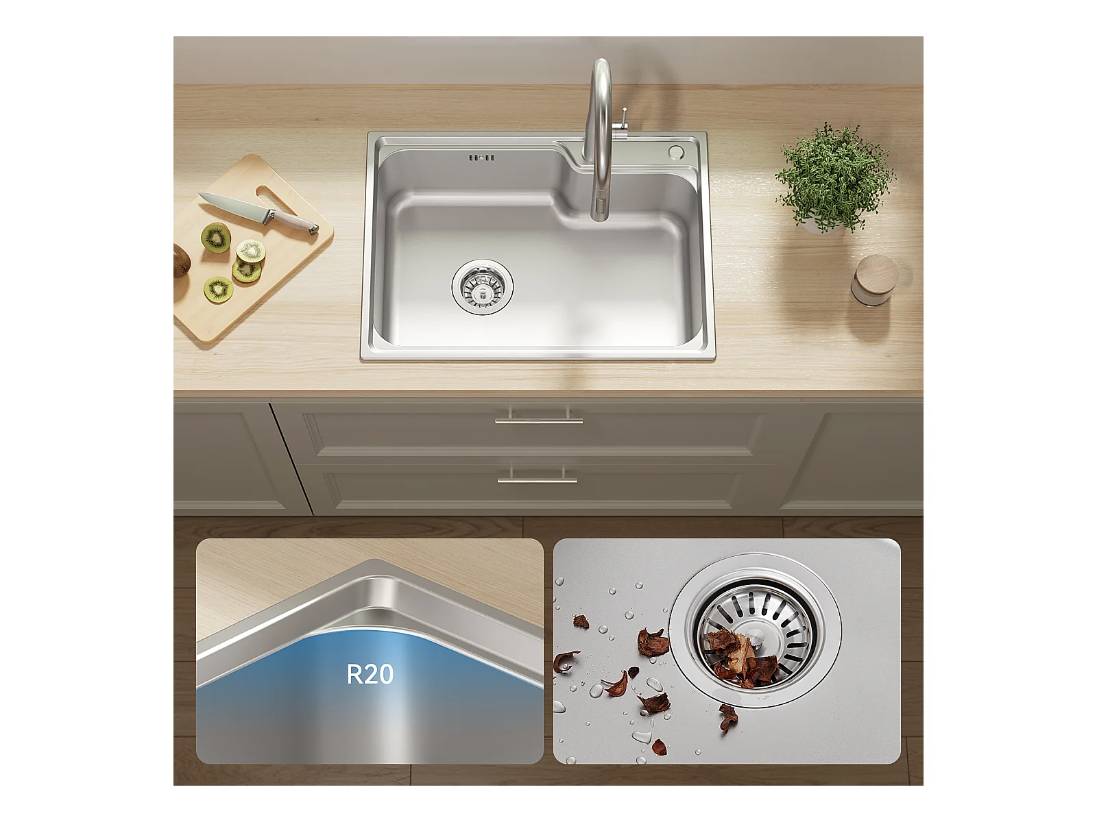 Auralum Max Évier Cuisine 1 Bac 62*45*21CM,Acier Inoxydable PVD Nano Vasque à Poser,Argent+Elégant Mitigeur de Cuisine Auralum Chromé,Pivotant 360°