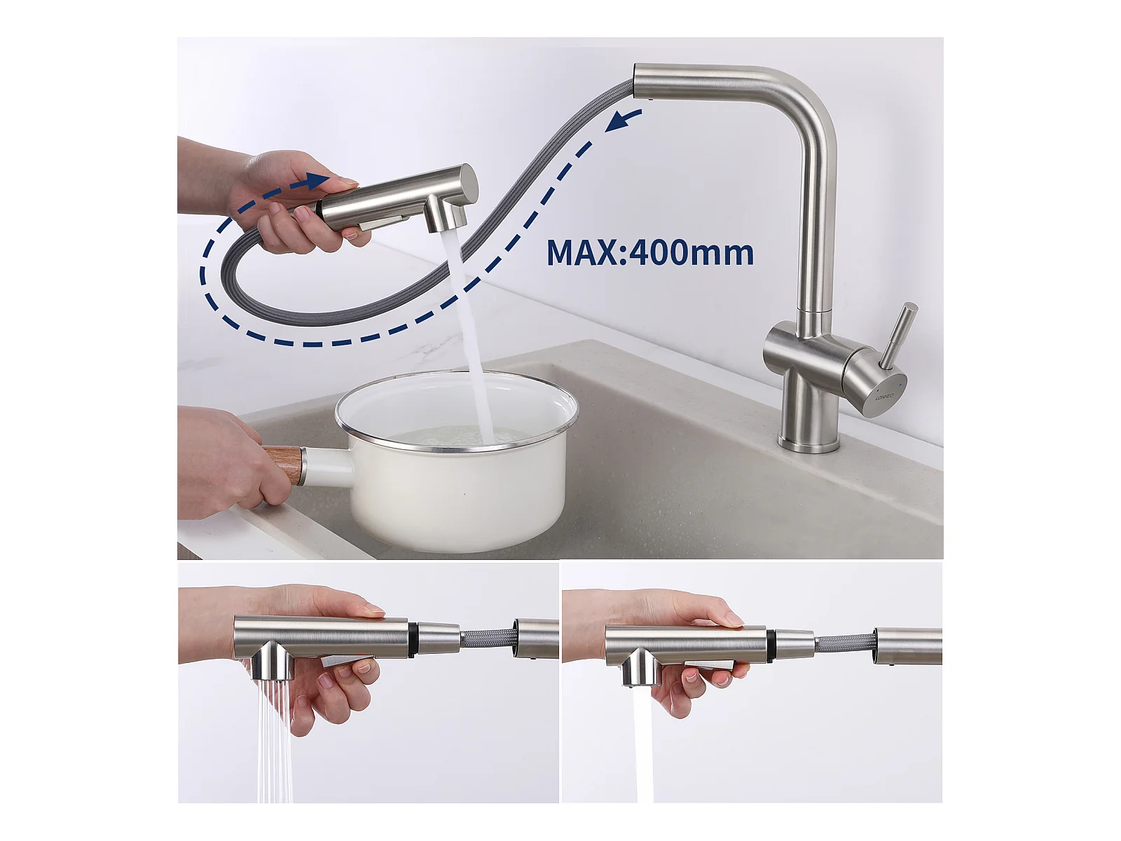 Cecipa max Robinet Cuisine avec Douchette Mitigeur Douchette d'évier Extractible à 2 Jets Mitigeur de Cuisine Pivotant à 360°,EU Modèle