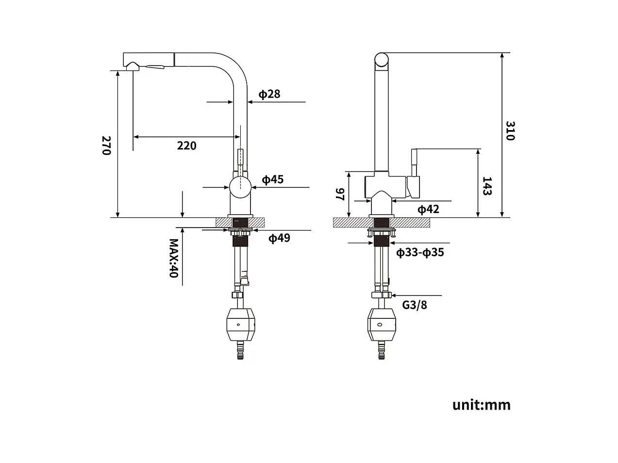 Robinet de cuisine avec douchette extractible en acier inoxydable - Noir mat - ROFLEX